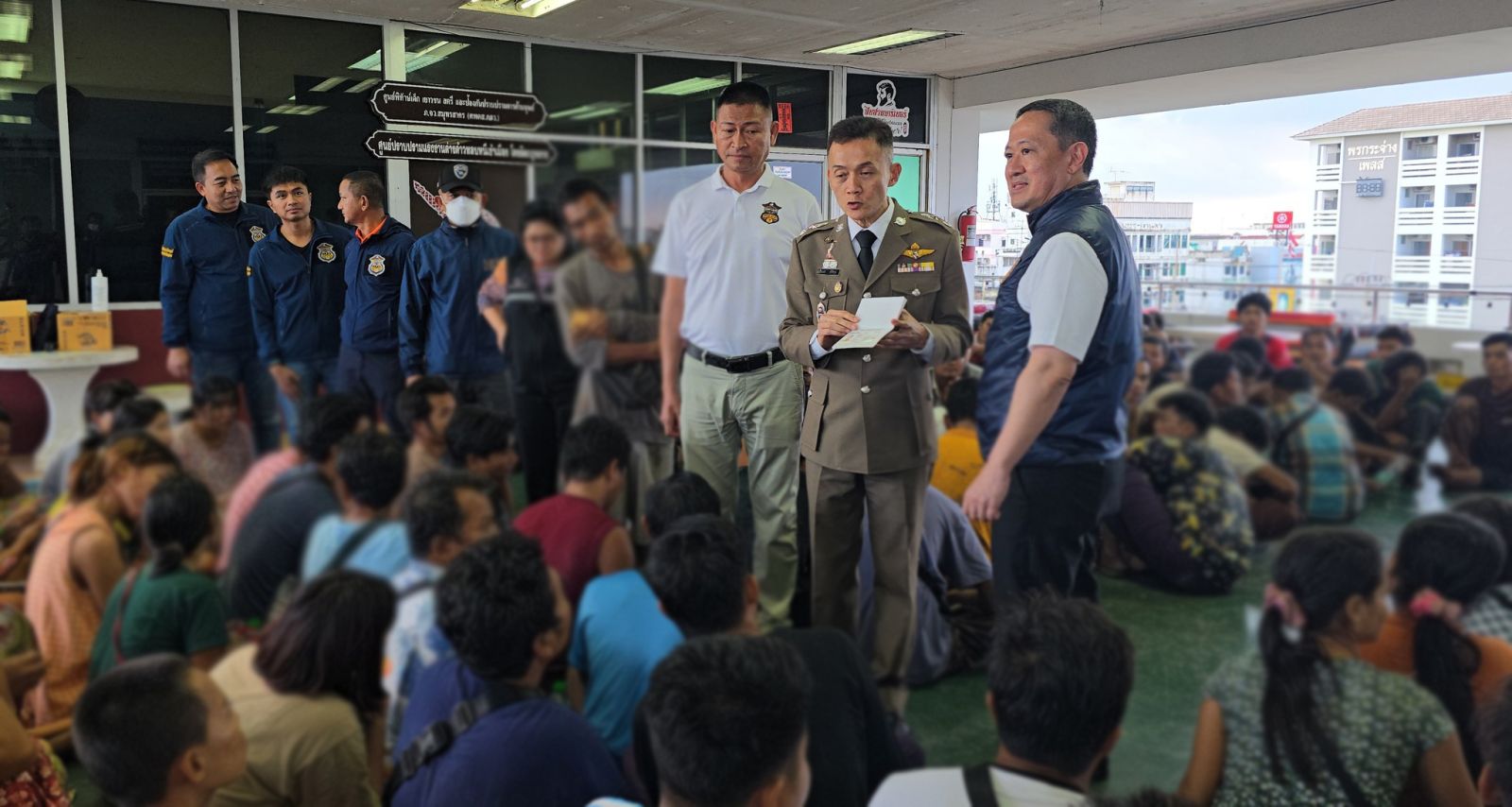เมื่อเวลา 15.00 น.ของวันที่ 16 ตุลาคม 2568 ที่บริเวณศูนย์ปราบปรามแรงงานต่างด้าวหลบหนีเข้าเมืองโดยผิดกฎหมาย กองบังคับการตำรวจภูธรจังหวัดสมุทรสาคร ร.ต.อ.เขตรัฐ ชาญศิลป์ รอง ผวจ.รรท.ผวจ.สมุทรสาคร พร้อมด้วย พล.ต.ต.ธีระเดช อธิภัคกุล ผบก.ภ.จว.สมุทรสาคร ติดตามการตรวจสอบแรงงานต่างด้าวสัญชาติเมียนมา กว่า 100 คน ที่ถูกควบคุมตัวได้ในอาคารที่พักแห่งหนึ่ง พื้นที่ตำบลโคกขาม อ.เมืองฯ จ.สมุทรสาคร โดยมีเจ้าหน้าที่ตำรวจ ภ.จว.สมุทรสาคร ตำรวจตรวจคนเข้าเมืองสมุทรสาคร ตำรวจ สภ.โคกขาม จัดหางานจังหวัด แรงงานจังหวัด และหน่วยงานที่เกี่ยวข้อง บูรณาการความร่วมมือในการจัดระเบียบสังคม หยุดขบวนการลักลอบนำพาแรงงานต่างด้าวเข้าเมืองโดยผิดกฎหมาย ในพื้นที่จังหวัดสมุทรสาคร