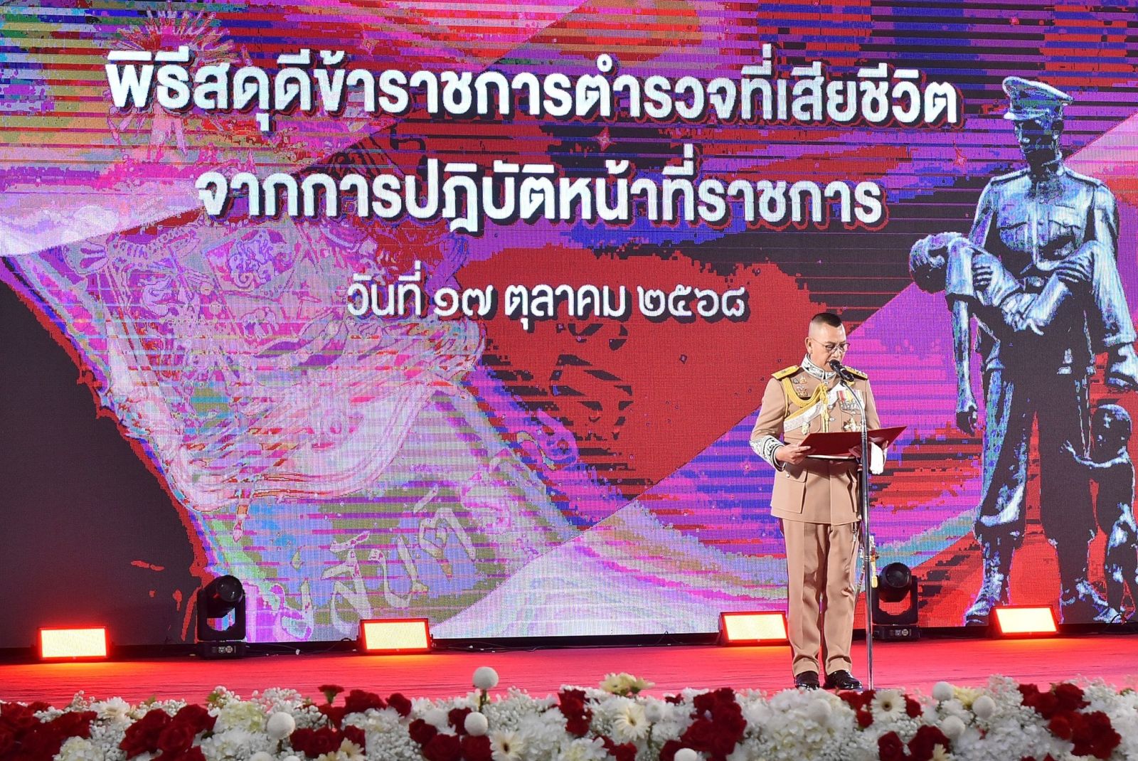 ทั้งนี้ ในปี 2568 มีข้าราชการตำรวจที่เสียชีวิตจากการปฏิบัติหน้าที่ จำนวน 24 นาย โดยในพิธีสดุดีข้าราชการตำรวจที่เสียชีวิตจากการปฏิบัติหน้าที่ราชการ ณ หอประชุมชุณหะวัณ นั้น ผบ.ตร.ได้เชิญผู้บังคับบัญชา สมาคมแม่บ้านตำรวจ และผู้ร่วมพิธีทุกท่าน ยืนสงบนิ่งและไว้อาลัยวีรชนทั้ง 24 นาย