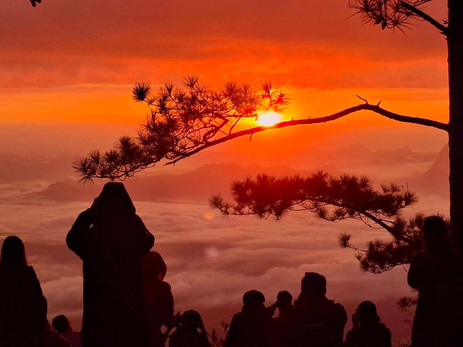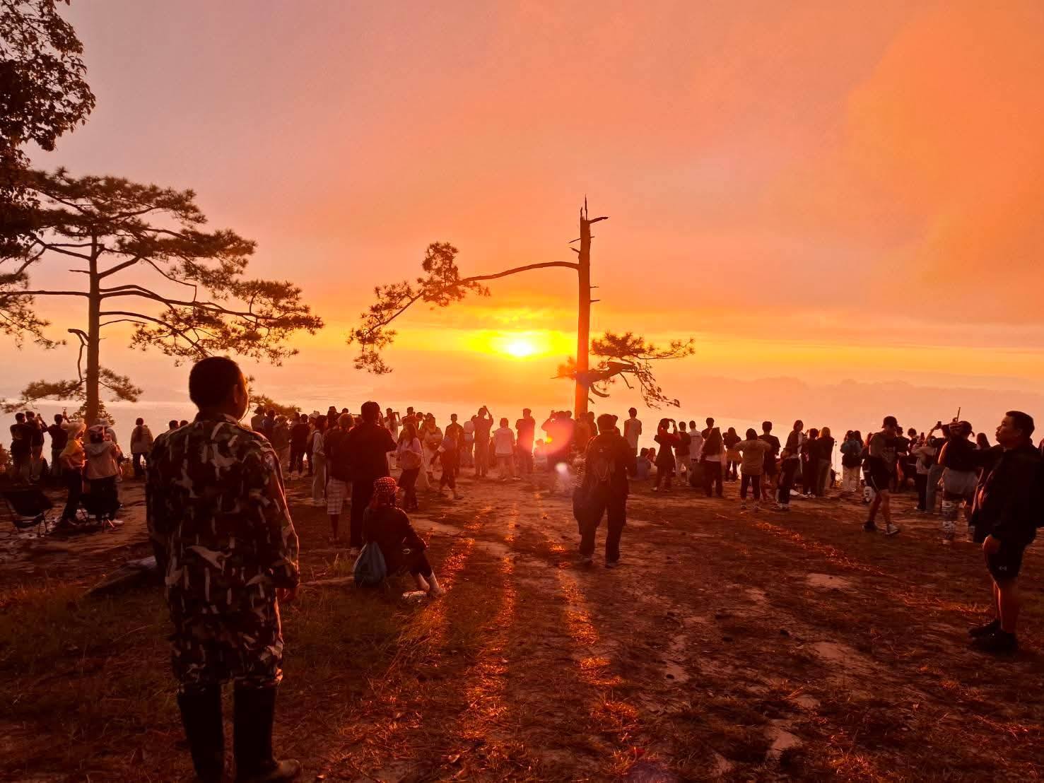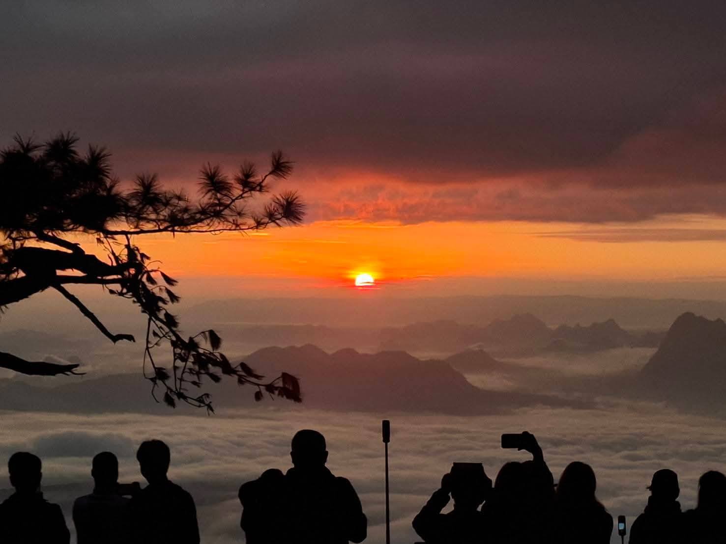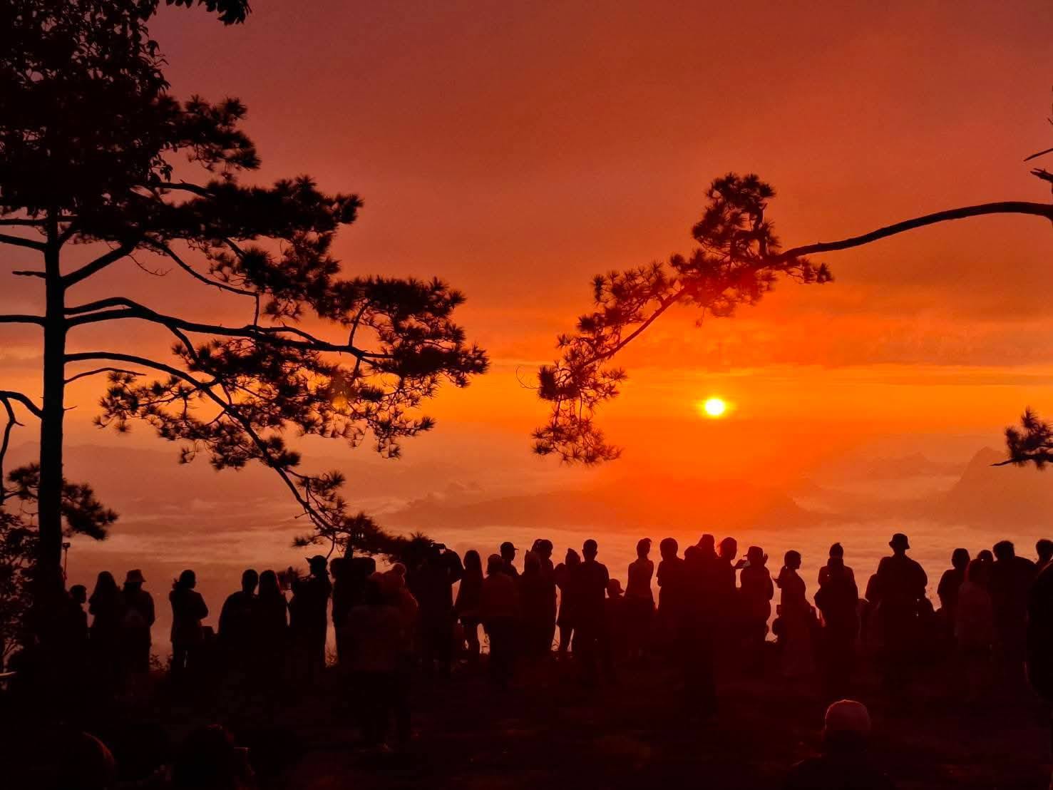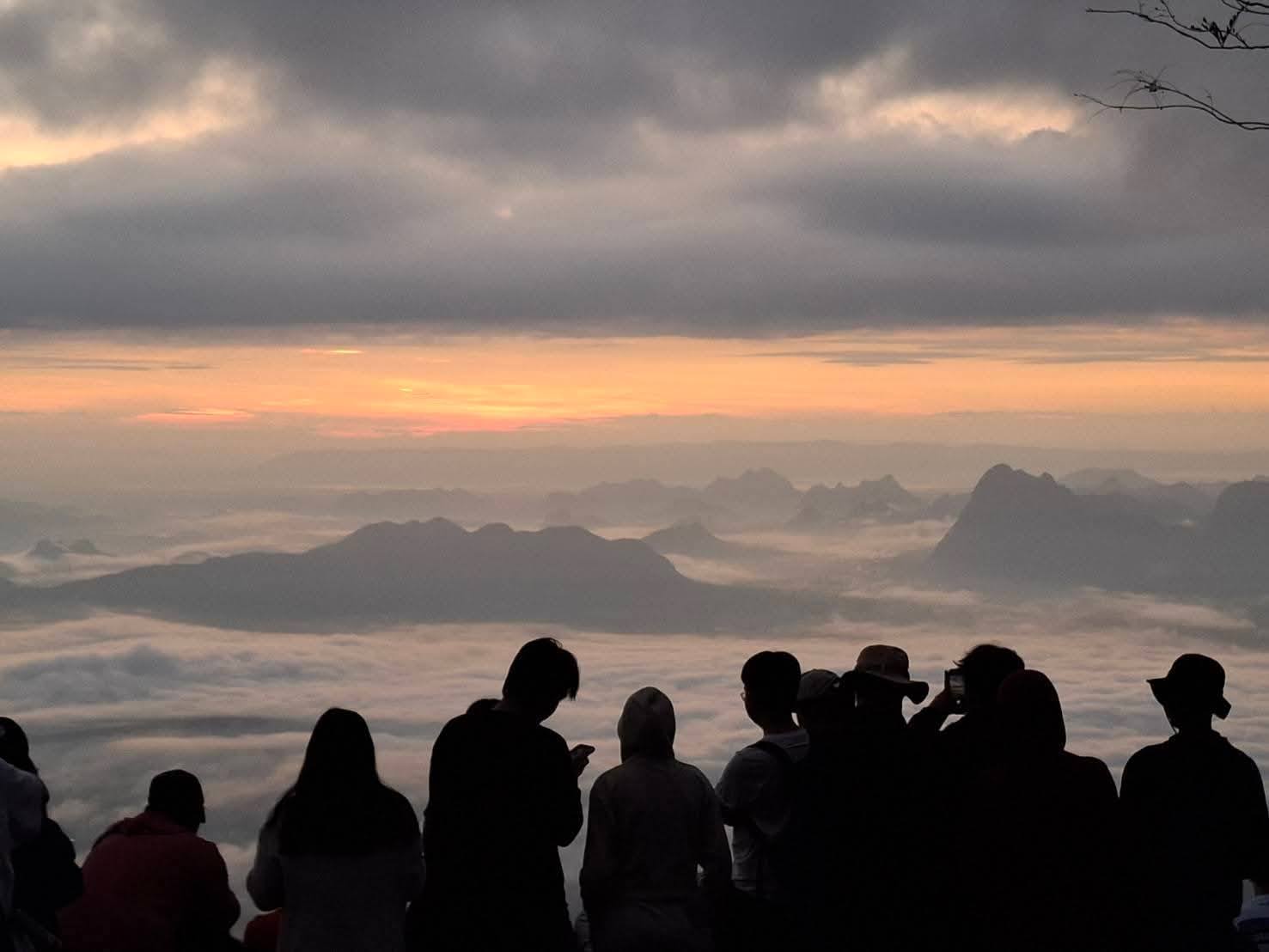 ในยามเช้าตรู่ที่อากาศยังหนาวเย็น นักท่องเที่ยวจำนวนมากตั้งใจตื่นแต่เช้ามืดเพื่อเดินทางมายังผานกแอ่น พร้อมใจกันรอคอยช่วงเวลาพิเศษที่แสงแรกของวัน