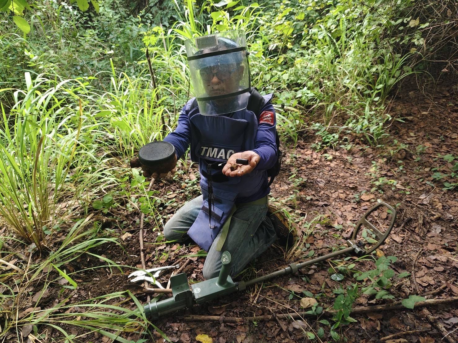 โดยชุดตรวจค้น ตรวจพบทุ่นระเบิดสังหารบุคคล จำนวน 2 ทุ่น เป็นทุ่นระเบิดสังหารบุคคลชนิดระเบิดอยู่กับที่ PMN จำนวน 1 ทุ่น และชนิดสะเก็ดระเบิด POMZ-2 จำนวน 1 ทุ่น สภาพพร้อมทำงาน สรุปการปฏิบัติภารกิจ ตั้งแต่ 10 ตค. - ปัจจุบัน ตรวจพบทุ่นระเบิดสังหารบุคคล รวม 11 ทุ่น (PMN จำนวน 7 ทุ่น, MN79 จำนวน 1 ทุ่น และ POMZ-2 จำนวน 3 ทุ่น )