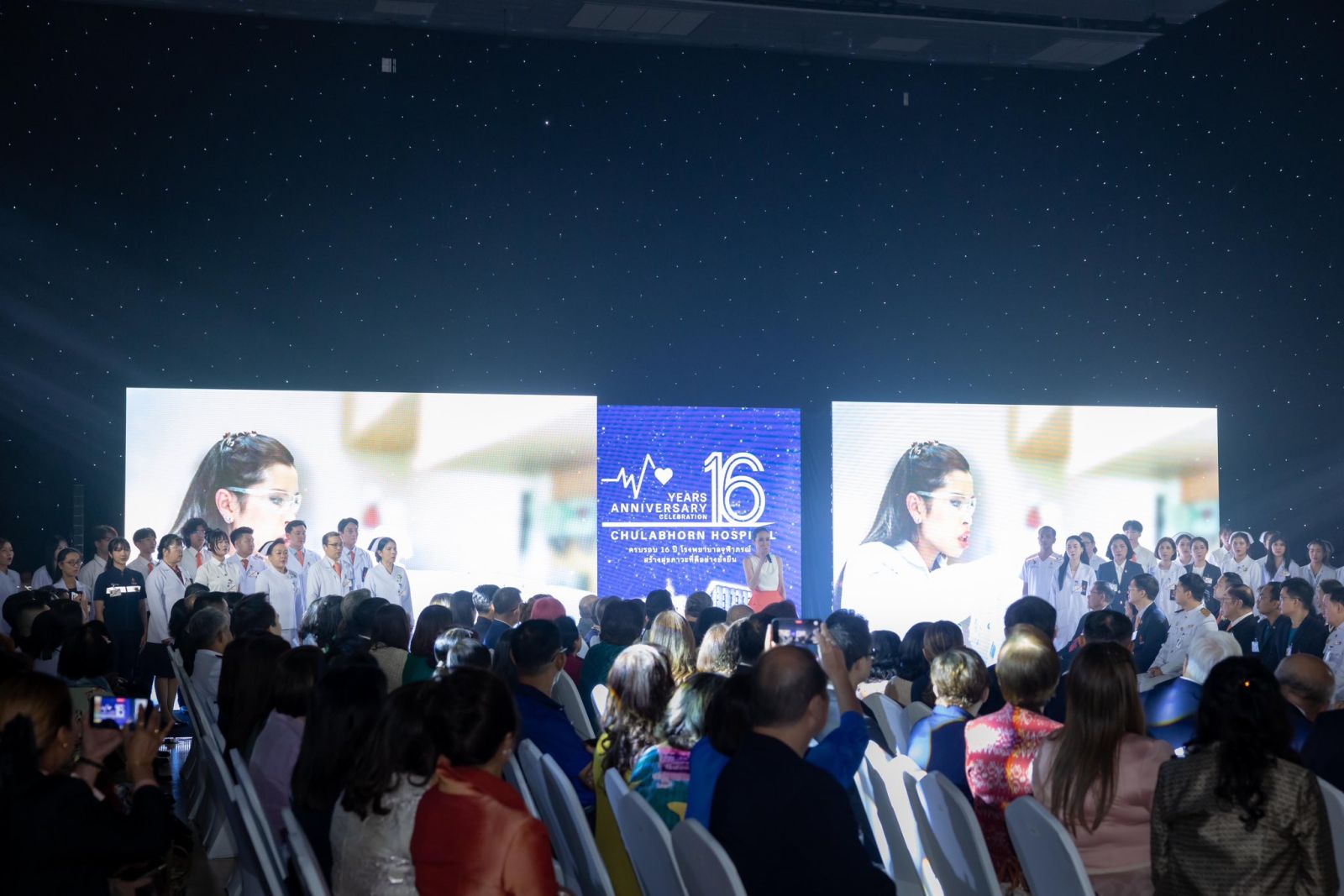 ด้วยในวันที่ ๒๙ ตุลาคม ๒๕๖๘ เป็นวันคล้ายวันสถาปนาครบรอบ ๑๖ ปี โรงพยาบาลจุฬาภรณ์ ศาสตราจารย์ ดร. สมเด็จเจ้าฟ้าฯ กรมพระศรีสวางควัฒน วรขัตติยราชนารี ทรงก่อตั้งโรงพยาบาลจุฬาภรณ์ขึ้นด้วยพระปณิธานอันแน่วแน่ที่จะทรงช่วยเหลือและบรรเทาความทุกข์ทรมานของราษฎรผู้เจ็บป่วยด้วยโรคมะเร็งและเป็นการช่วยยกระดับการรักษาพยาบาลของประเทศให้ได้มาตรฐานสากล ทรงได้ขยายขอบข่ายการให้บริการทางการแพทย์ของโรงพยาบาลจุฬาภรณ์ให้ครอบคลุมการรักษาทุกโรค โดยได้พระราชทานแนวพระนโยบายให้นำองค์ความรู้และนวัตกรรมมาใช้ในการรักษาผู้ป่วยเพื่อเป็นที่พึ่งทางสุขภาพแก่ประชาชนได้อย่างทั่วถึงและเท่าเทียมกันเป็นที่ประจักษ์แก่พสกนิกรชาวไทยทุกหมู่เหล่า ต่อมาทรงจัดตั้งราชวิทยาลัยจุฬาภรณ์เพื่อเป็นศูนย์กลางการเรียน การสอน และการวิจัยที่สร้างบัณฑิตและพัฒนาบุคลากรทางการแพทย์ ที่มีความสำคัญและตอบสนองต่อความต้องการของประเทศ โดยภายในงาน ได้เสด็จทอดพระเนตรการแสดงนิทรรศการผลงานนวัตกรรมความก้าวหน้าทางการแพทย์และการดูแลรักษาผู้ป่วยของโรงพยาบาลจุฬาภรณ์ อาทิ โครงการวิจัยเพื่อพัฒนาการดูแลรักษาผู้ป่วยมะเร็งเต้านมระยะแพร่กระจายที่ได้รับยาทราสทูซูแมบ การปลูกถ่ายไขกระดูกและการดูแลรักษาผู้ป่วยมะเร็งต่อมน้ำเหลืองในพระอนุเคราะห์ที่ได้รับการปลูกถ่ายไขกระดูกจากศูนย์โลหิตวิทยาและเซลล์บำบัด และนวัตกรรมการแพทย์ของศูนย์ศัลยกรรม ในด้านการประยุกต์ใช้หุ่นยนต์ช่วยในการช่วยผ่าตัดรักษามะเร็ง อาทิ มะเร็งต่อมลูกหมาก มะเร็งไต มะเร็งกระเพาะปัสสาวะและท่อไต มะเร็งลำไส้ใหญ่ มะเร็งตับ ตับอ่อน เป็นต้น และการออกร้านผลิตภัณฑ์การกุศล สิริศิลปิน ศิลป์เพื่อชีวิต คอลเลกชันชุดเสืออวกาศ จากมูลนิธิศรีสวางควัฒน ในพระอุปถัมภ์ฯ และทอดพระเนตรนิทรรศการภาพวาดฝีพระหัตถ์ชุดเสืออวกาศ “จักรวาลแห่งน้ำพระทัยเจ้าฟ้าจุฬาภรณ์” ณ ชั้น ๑ อาคารกรมพระศรีสวางควัฒน โรงพยาบาลจุฬาภรณ์ โอกาสนี้ มีผู้มีจิตศรัทธาร่วมบริจาคเงินโดยเสด็จพระกุศลในกองทุนหทัยทิพย์ มูลนิธิจุฬาภรณ์ เพื่อร่วมเป็นส่วนหนึ่งในการแสดงพลังปกป้องอธิปไตยของชาติ เพื่อการบรรเทาทุกข์และสร้างประโยชน์สุขสู่ประชาชนในพื้นที่ชายแดนอย่างยั่งยืน