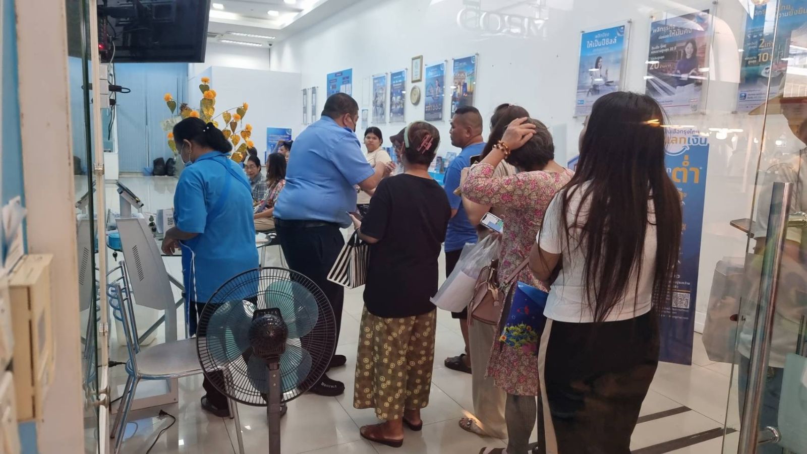 นนทบุรี : วันที่ 20 ต.ค.68 ประชาชนแห่ยืนรอต่อแถวที่หน้าธนาคารกรุงไทยแต่เช้าตรู่ เพื่อยืนยันตัวตนขอรับสิทธิในโครงการคนละครึ่งพลัส 2568 ของรัฐบาลในวันแรกอย่างคึกคัก