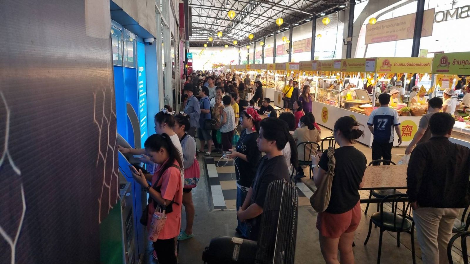 โดยบรรยากาศที่หน้าธนาคารกรุงไทย สาขาตลาดรวมใจ ภายในเมืองทองธานี ต.บ้านใหม่ อ.ปากเกร็ด จ.นนทบุรี เมื่อเวลา 09.30 น. มีประชาชนทยอยเดินทางมาที่ธนาคารเพื่อยืนยันตัวตนเข้าร่วมโครงการคนละครึ่งเป็นจำนวนมาก ตั้งแต่ธนาคารยังไม่เปิดให้บริการ โดยพบว่ามีประชาชนที่สนใจเข้าร่วมโครงการนี้ แบ่งออกเป็น 2 กลุ่ม คือกลุ่มแรกที่เป็นวัยกลางคนอายุประมาณ 40 ปีขึ้นไป มายืนรอต่อแถวเพื่อยืนยันตัวตนกับทางธนาคารตั้งแต่เช้าตรู่ โดยทยอยมายืนต่อแถวเป็นจำนวนมาก ในขณะที่กลุ่มที่ 2 ซึ่งส่วนใหญ่เป็นนักศึกษา วัยรุ่นและวัยทำงาน มายืนรอต่อแถวเพื่อยืนยันตัวตนขอรับสิทธิผ่านทางตู้เอทีเอ็มหน้าธนาคารแทนการยืนยันตัวตนกับทางเจ้าหน้าที่ของทางธนาคารแทน