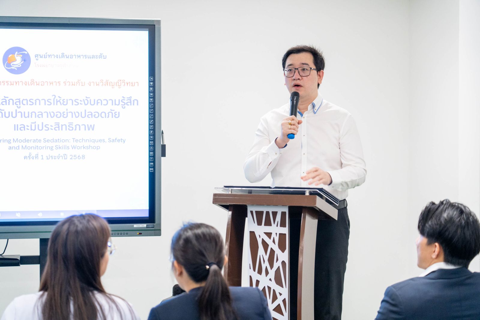 การจัดอบรมในครั้งนี้ มีวัตถุประสงค์เพื่อพัฒนาองค์ความรู้และทักษะของบุคลากรทางการแพทย์ในการให้ยาระงับความรู้สึกระดับปานกลาง ซึ่งเป็นหัตถการที่ช่วยลดความวิตกกังวลและความเจ็บปวดของผู้ป่วย โดยไม่จำเป็นต้องดมยาสลบเต็มรูปแบบ ทั้งนี้ การให้ยาระงับความรู้สึกในระดับดังกล่าวจำเป็นต้องอาศัยความรู้ ความเข้าใจ และทักษะที่ถูกต้อง เพื่อป้องกันภาวะแทรกซ้อนและยกระดับคุณภาพการดูแลผู้ป่วยให้มีประสิทธิภาพสูงสุด
