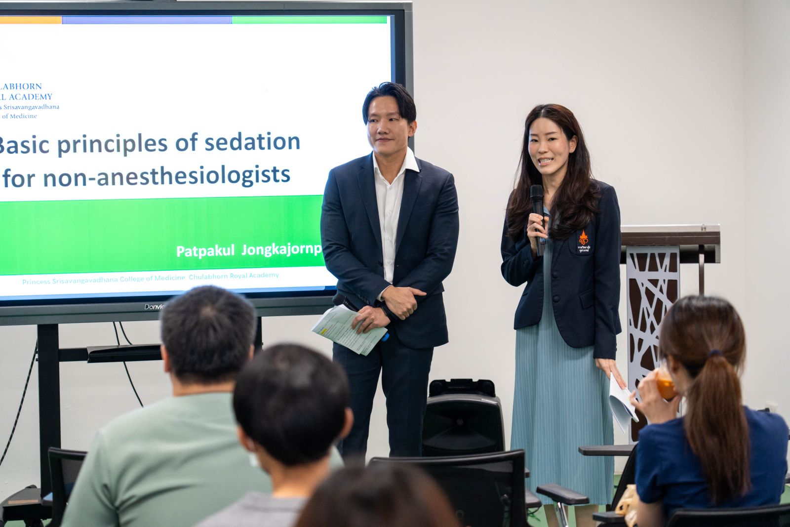 เมื่อวันที่ 15 ตุลาคม 2568 โรงพยาบาลจุฬาภรณ์ ราชวิทยาลัยจุฬาภรณ์ จัดประชุมวิชาการและอบรมเชิงปฏิบัติการ เรื่อง “การให้ยาระงับความรู้สึกระดับปานกลางอย่างปลอดภัยและมีประสิทธิภาพ” ครั้งที่ 1 ประจำปี 2568 Mastering Moderate Sedation: Techniques, Safety and Monitoring Skills Workshop โดยมี พญ.กันต์สุดา ปัญจชัยพรพล ผู้ช่วยผู้อำนวยการโรงพยาบาลจุฬาภรณ์ เป็นประธานเปิดงาน พร้อมด้วย นพ.วรวัฒน์ แสงวิภาสนภาพร หัวหน้างานอายุรกรรมทางเดินอาหารและตับ และ พญ.กัลยารัตน์ น้อยพิทักษ์ หัวหน้างานวิสัญญีวิทยา ร่วมให้การต้อนรับผู้เข้าร่วมอบรม