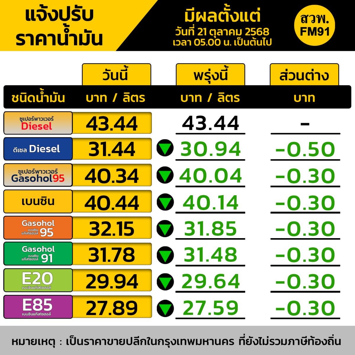 มีผลวันที่ 21 ต.ค. 68 ตั้งแต่ เวลา 05.00 น. เป็นต้นไป