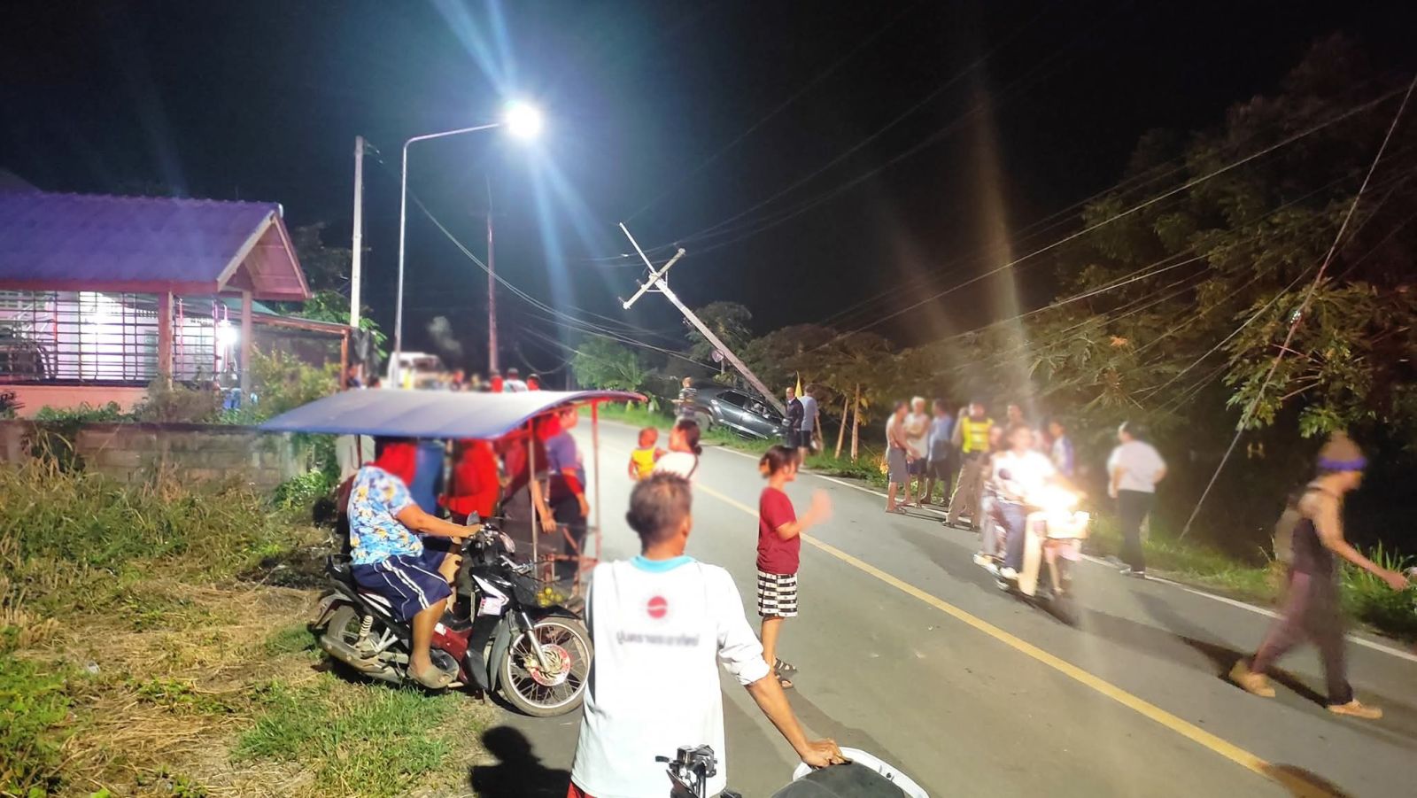 รถอเนกประสงค์เสียหลักหลุดโค้งชนเสาไฟฟ้า พบบุคคลต่างด้าว 16 ชีวิตลักลอบหนีเข้าเมือง แอบซุกซ่อนในยานพาหนะ จ.กาญจนบุรี