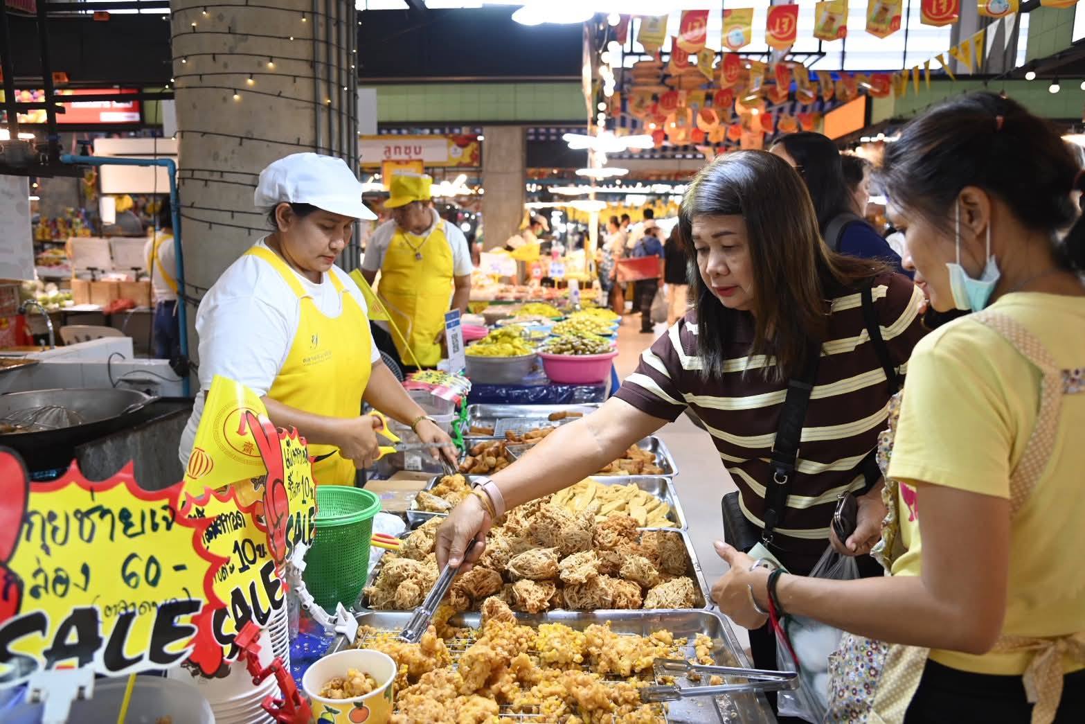 นายกรนิจ กล่าวต่อว่า “สถานการณ์การจำหน่ายสินค้าเทศกาลกินเจ ณ ตลาดยิ่งเจริญ เป็นไปอย่างคึกคัก มีประชาชนมาจับจ่ายจำนวนมาก โดยพบว่าผู้ประกอบการให้ความร่วมมืออย่างดี ในการติดป้ายแสดงราคาสินค้าอย่างชัดเจนครบถ้วน และมีการจัดโปรโมชั่น “3 อย่าง 100 บาท” เพื่อช่วยลดภาระค่าใช้จ่ายของประชาชน พร้อมทั้งเพิ่มจำนวนแผงจำหน่ายวัตถุดิบอาหารเจ เช่น ผักสด เต้าหู้ หมี่ซั่ว และสินค้าโปรตีนทางเลือก เพื่อรองรับความต้องการบริโภคที่เพิ่มสูงขึ้นในช่วงเทศกาล