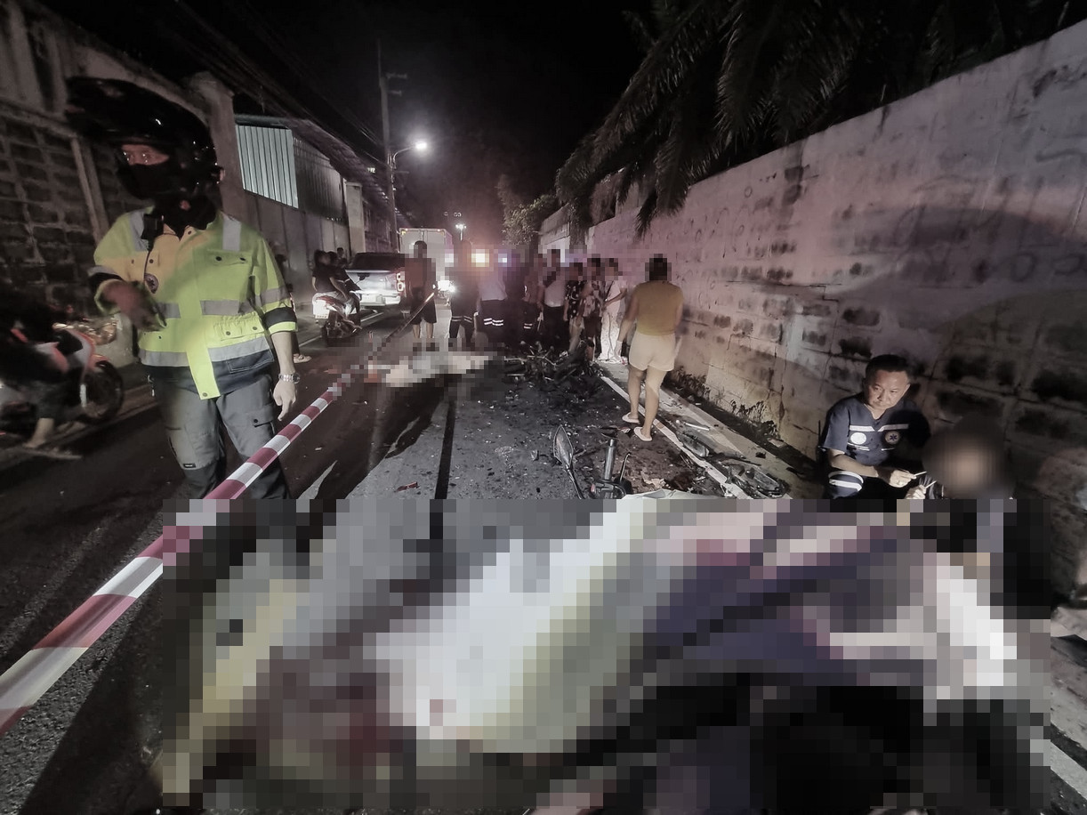 ที่เกิดเหตุ พบรถจักรยานยนต์ ฮอนด้า เวฟ ลักษณะชนกับ รถจักรยานยนต์ ยามาฮ่า เอ็กซ์แม็กซ์ สภาพรถพังเสียหายทั้งคู่ ตรวจสอบพบว่า ผู้ขับขี่รถทั้ง 2 คันเสียชีวิตด้วยกันทั้งคู่ โดยเป็น ชายไทย อายุ 15 ปี และ ชายไทย อายุ 29 ปี ในส่วนของสาเหตุที่แท้จริงนั้นอยู่ที่การสอบสวนของเจ้าหน้าที่ตำรวจ สภ.เมืองสมุทรปราการ