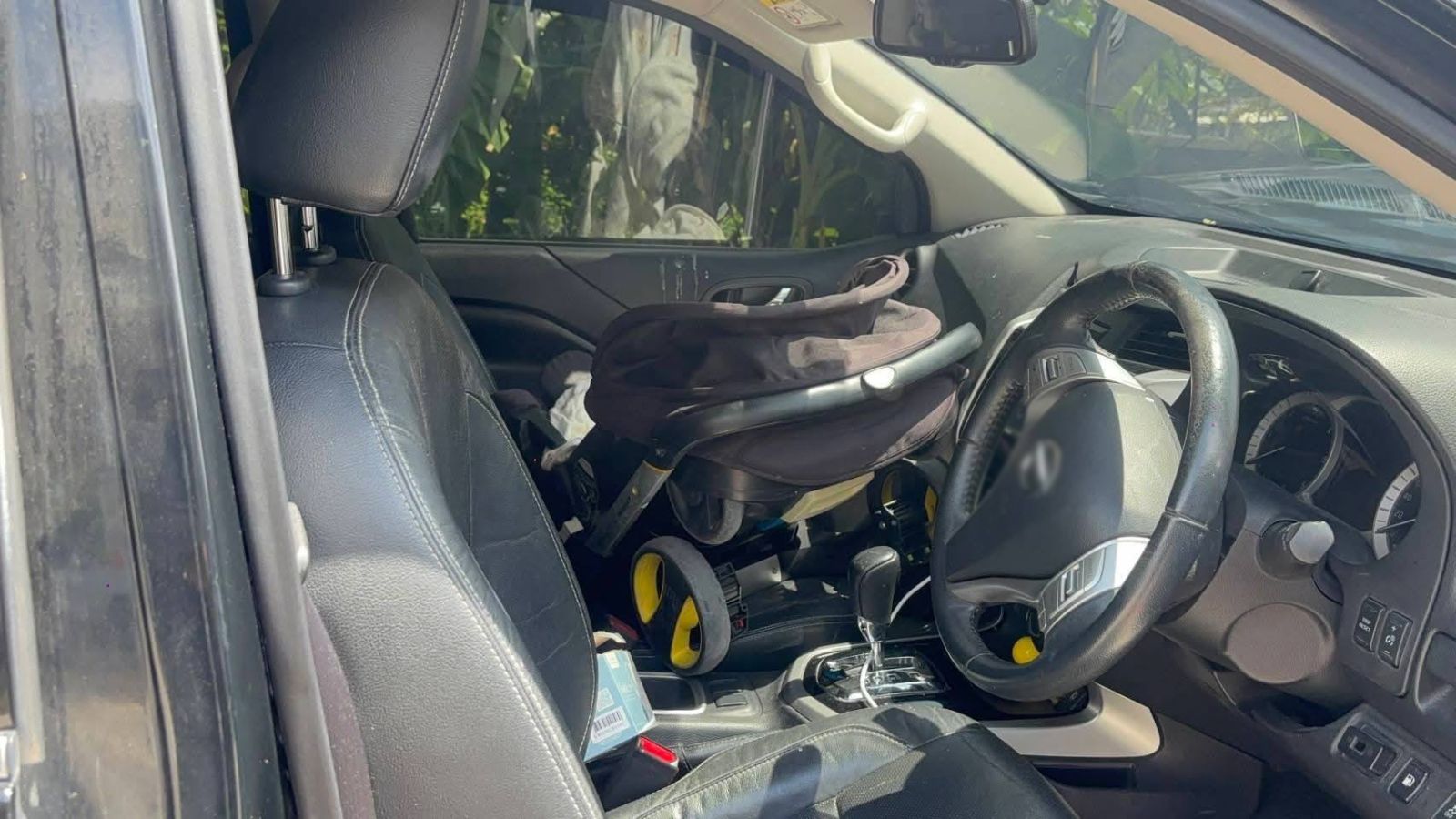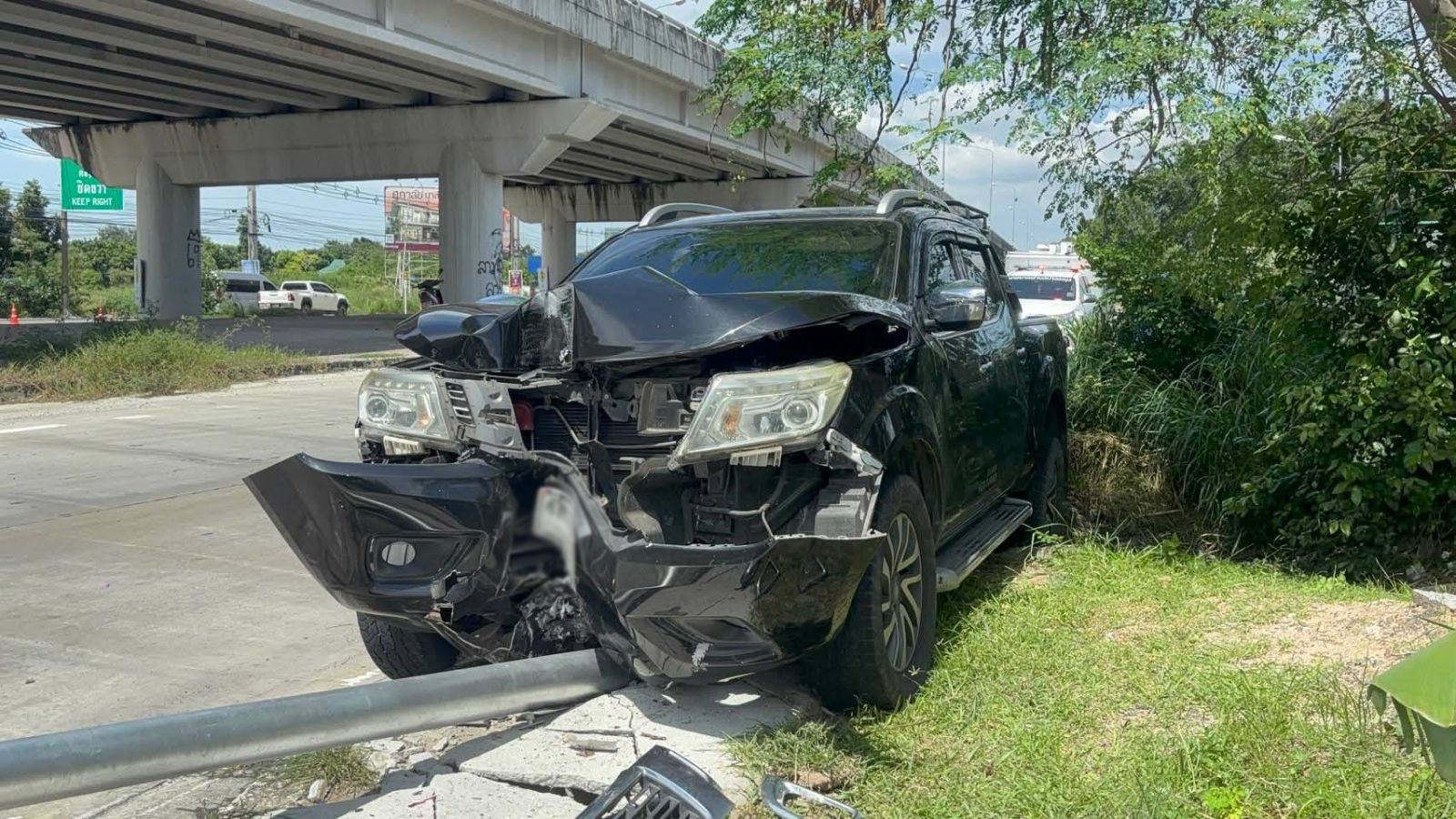 ที่เกิดเหตุ พบรถกระบะนิสสัน นาวารา สีดำ ทะเบียน กรุงเทพมหานคร สภาพด้านหน้ารถพังยับเยิน ชนเข้ากับเสาไฟฟ้าจนหักเอียงไปหนึ่งต้น ภายในรถพบผู้ได้รับบาดเจ็บเล็กน้อย 2 ราย คือ หญิงไทย อายุ 42 ปี คนขับ และลูกสาว เด็กหญิง วัย 2 ขวบ ซึ่งยังอยู่ในคาร์ซีท โชคดีที่ทั้งคู่ไม่ได้รับบาดเจ็บรุนแรง