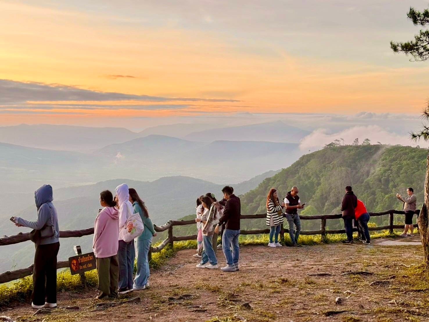 เช้าวันนี้ 23 ตุลาคม 2568 บนยอดภูเรือมีนักท่องเที่ยวจำนวนมากขึ้นไปสัมผัสอากาศหนาวอุณหภูมิต่ำสุดอยู่ที่ประมาณ 16 องศาเซลเซียส พร้อมชม “แสงแรกของวัน” ที่โผล่พ้นขอบฟ้าท่ามกลางทะเลหมอกหนานุ่มปกคลุมทั่วหุบเขา สร้างภาพบรรยากาศสวยงามน่าประทับใจ