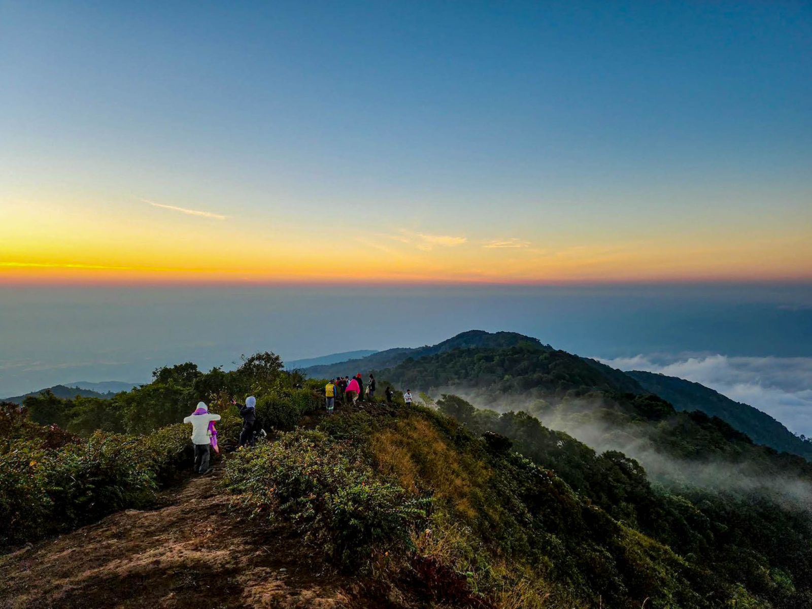 บรรยากาศหนาวเย็น และมองเห็นพระอาทิตย์โผล่ขึ้นเหนือขอบฟ้า แสงสีทองตัดกับไอหมอกบางๆ ที่ลอยคลุมเหนือทิวเขาอย่างสวยงาม ลมหนาวพัดโชยเบาๆ เพิ่มความสดชื่นให้ผู้มาเยือน สูดอากาศบริสุทธิ์ได้เต็มปอด