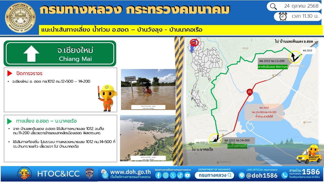 กรมทางหลวง สรุปสถานการณ์ล่าสุดน้ำท่วมยังผ่านไม่ได้ใน จ.เชียงใหม่ แนะนำตรวจสอบเส้นทางเลี่ยงก่อนเดินทาง