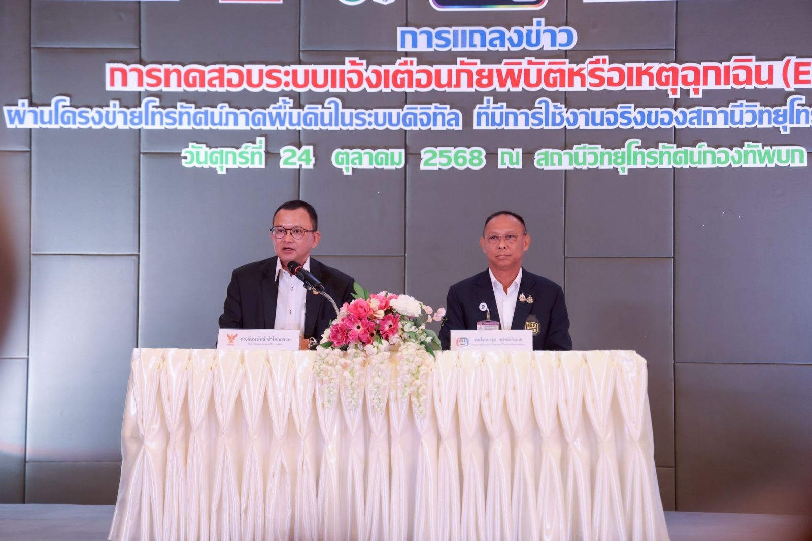 ด้าน พลโทอาวุธ พุทธอำนวย กรรมการผู้อำนวยการใหญ่สถานีวิทยุโทรทัศน์ กองทัพบก กล่าวว่า การทดสอบระบบแจ้งเตือนภัยพิบัติหรือ เหตุฉุกเฉิน Emergency Warning System หรือ EWS เป็นความร่วมมือกันระหว่าง สำนักงาน กสทช. กับ สถานีวิทยุโทรทัศน์กองทัพบก ได้เริ่มดำเนินการทดสอบด้านเทคนิคระบบแจ้งเตือนภัยพิบัติ หรือเหตุฉุกเฉินมาตั้งแต่วันที่ 8 พ.ค. 2567 ในรูปแบบระบบปิด ผ่านทางโครงข่ายโทรทัศน์ภาคพื้นดินในระบบดิจิทัล หรือ มักซ์ ของสถานีวิทยุโทรทัศน์กองทัพบก ที่เป็นผู้นำโครงข่ายโทรทัศน์ภาคพื้นดินในระบบดิจิทัลที่มีผู้ใช้บริการมากสุดถึง 11 ราย คือ โครงข่ายที่ 2 และโครงข่ายที่ 5 ซึ่งจากผลการทดสอบระบบ แจ้งเตือนภัยพิบัติหรือเหตุฉุกเฉิน สามารถทำงานได้มีประสิทธิภาพตามวัตถุประสงค์ ดังนั้น สถานีวิทยุโทรทัศน์กองทัพบก จึงขอทดสอบด้านเทคนิคในระบบเปิด โดยสถานีที่ใช้ในการทดสอบ ได้แก่ สถานีภาคเหนือ ใช้สถานีเสริมบ้านนาไร่เดียว มีที่ตั้งอยู่ที่อำเภอเมือง จ.พะเยา และสถานีภาคใต้ ใช้สถานีเสริมหลังสวน มีที่ตั้งอยู่ที่อ.หลังสวน จ.ชุมพร จะดำเนินการทดสอบในช่วงเวลากลางคืนของวันพุธที่ 12 พ.ย. 2568 ต่อเนื่องถึงวันพฤหัสบดีที่ 13 พ.ย. 2568 โดย การทดสอบแบบจำกัดพื้นที่ จำนวน 2 ครั้ง ครั้งละ 1 สถานี และทดสอบพร้อมกัน 2 สถานี จำนวน 1 ครั้ง ซึ่งถือเป็นการจำลองการแจ้งเตือนทั้งประเทศ