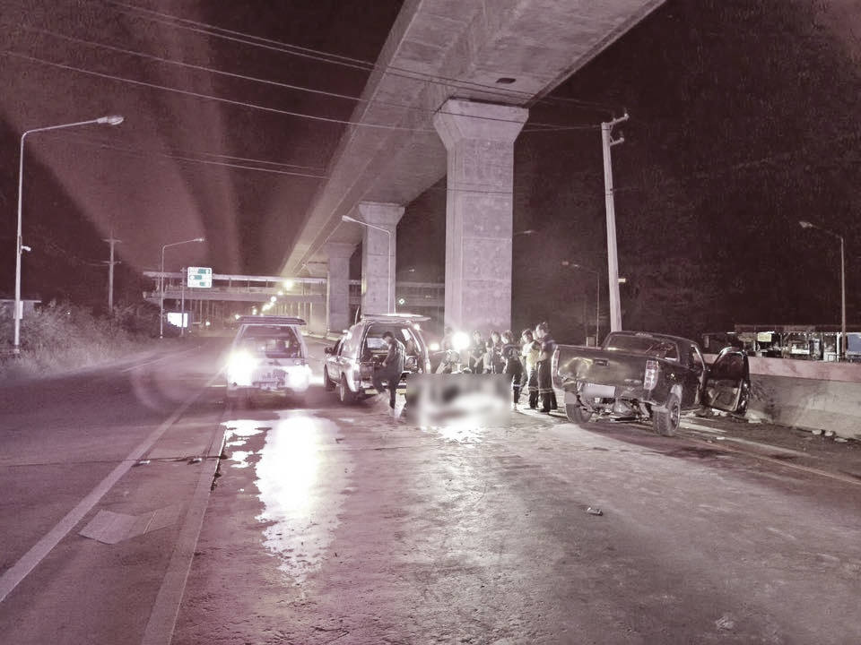 รถกระบะชนขอบทาง ถนนหมายเลข 366 สาวนั่งเบาะข้างดับ ส่วนคนขับเจ็บสาหัส จ.ลพบุรี