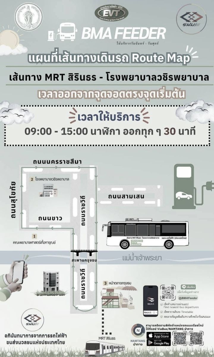 3.เส้นทาง MRT สิรินธร – โรงพยาบาลวชิรพยาบาล ให้บริการเวลา 09.00 – 15.00 น.ออกทุก ๆ 30 นาที