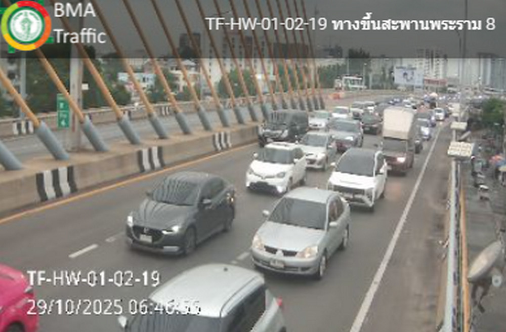 - สะพานพระราม 8 ขาเข้า ท้ายเต็มอยู่ที่แยกอรุณอมรินทร์