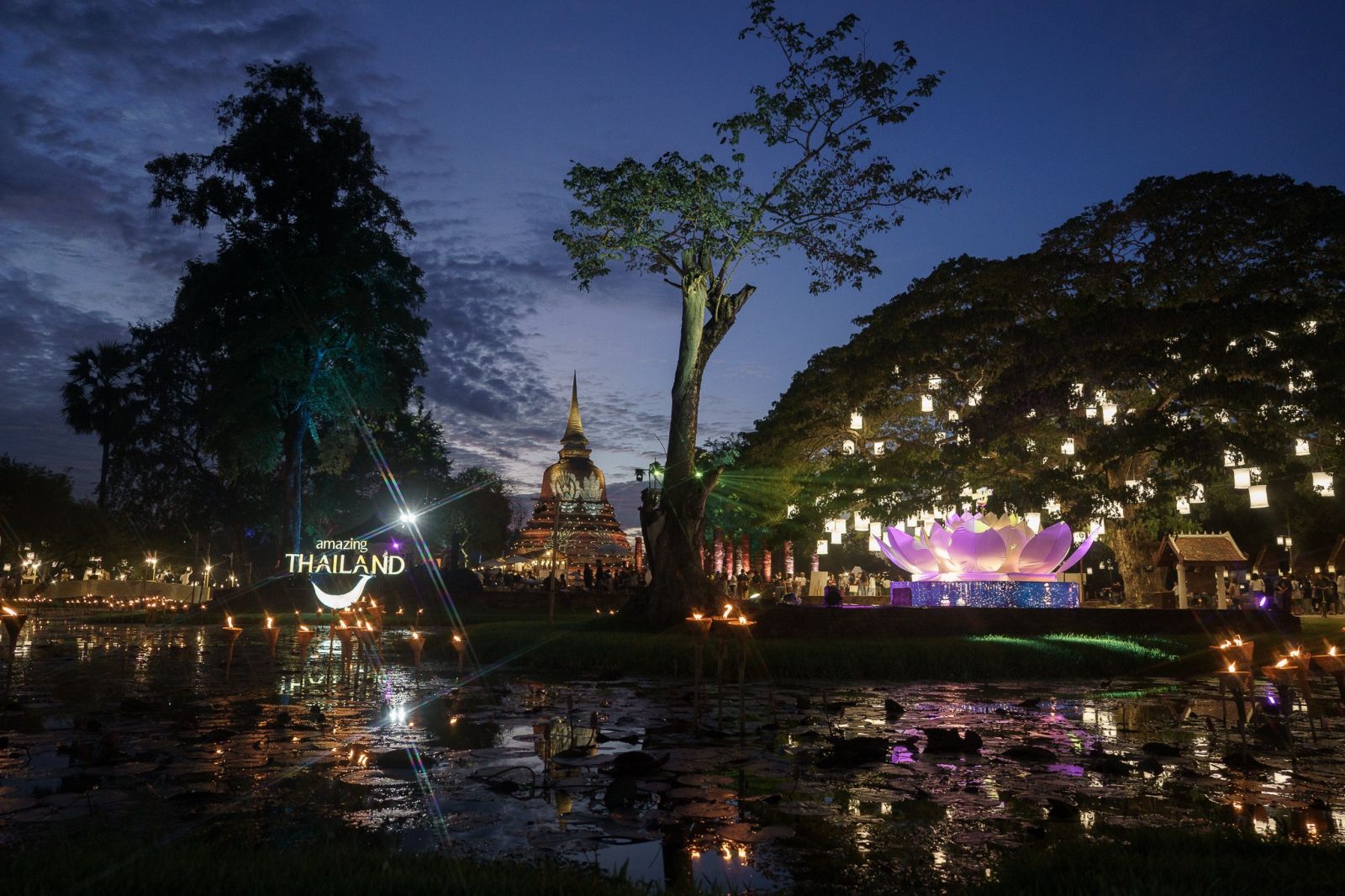 งาน Maha Loy Krathong @ Sukhothai กำหนดจัดงาน 27 ตุลาคม-5 พฤศจิกายน 2568 ณ วัดชนะสงคราม อุทยานประวัติศาสตร์สุโขทัย จังหวัดสุโขทัย ยังคงจัดงานตามกำหนดเดิม โดย ททท. ร่วมกับจังหวัดสุโขทัยจัดงานประเพณีลอยกระทง เผาเทียน เล่นไฟ จังหวัดสุโขทัย ประจำปี 2568 โดยโซนของ ททท. จัดขึ้นบริเวณวัดชนะสงคราม ในแนวคิดหลักมหาลอยกระทง MAHA LOI KRATHONG @ Sukhothai กิจกรรมภายในงาน ประกอบด้วย การตกแต่งเสริมสร้างบรรยากาศประดับไฟอย่างสวยงามตระการตาเข้ากับบรรยากาศย้อนยุคผสมผสานวัฒนธรรมวิถีชีวิต และความรุ่งเรืองของวัฒนธรรม กิจกรรมสาธิตงานหัตถกรรม ศิลปะงาน Craft และกิจกรรม DIY ผลงานที่เป็นเอกลักษณ์ของชุมชนในจังหวัดสุโขทัย เช่น เครื่องปั้นดินเผาปัดเงิน ปัดทอง บ้านทุ่งหลวง การทำตะคัน วิถีชุมชนสำหรับใช้ในประเพณีลอยกระทง การทำข้อมือจากเหล็กน้ำพี้ การเพ้นท์โคม เพ้นท์พัด ลายเฉพาะของชาวสุโขทัย เป็นต้น ตลาดจำหน่ายสินค้าและอาหารพื้นเมือง เมนูหาทานยาก ของดีประจำถิ่น และลิ้มรสอาหารไทย หลากหลายเมนูที่คัดสรรมาอย่างพิถีพิถันภายในงาน อาทิ ข้าวเปิ๊บ บ้านนาต้นจั่น ขนมข้าวปุกงา การแสดงทางวัฒนธรรมไทย ชุดการแสดงที่ร่วมแสดงความอาลัย ถ่ายทอดความงดงามทางนาฏศิลป์ กิจกรรมส่งเสริมการท่องเที่ยวแต่งกายชุดไทยร่วมกิจกรรมลอยกระทง เพื่อร่วมสืบสานประเพณีอันดีงาม ถ่ายภาพงดงามในบรรยากาศงานย้อนยุค โดยจัดให้มีพิธีถวายความอาลัย พร้อมปรับการแสดงหลักเป็นการบรรเลงดนตรีเพลงพระราชนิพนธ์ การบรรเลงดนตรีไทยและการแสดงศิลปวัฒนธรรมไทยที่สื่อถึงการเทิดพระเกียรติและความจงรักภักดี พร้อมควบคุมโทนสีของพื้นที่จัดงานให้เหมาะสม นอกจากนี้ ตลอดระยะการจัดงาน ทุกวันในเวลา 21.21 น. จะจัดให้มีพิธีจุดตะคัน เพื่อร่วมแสดงความไว้อาลัยและสำนึกในพระมหากรุณาธิคุณโดยพร้อมเพรียงกัน