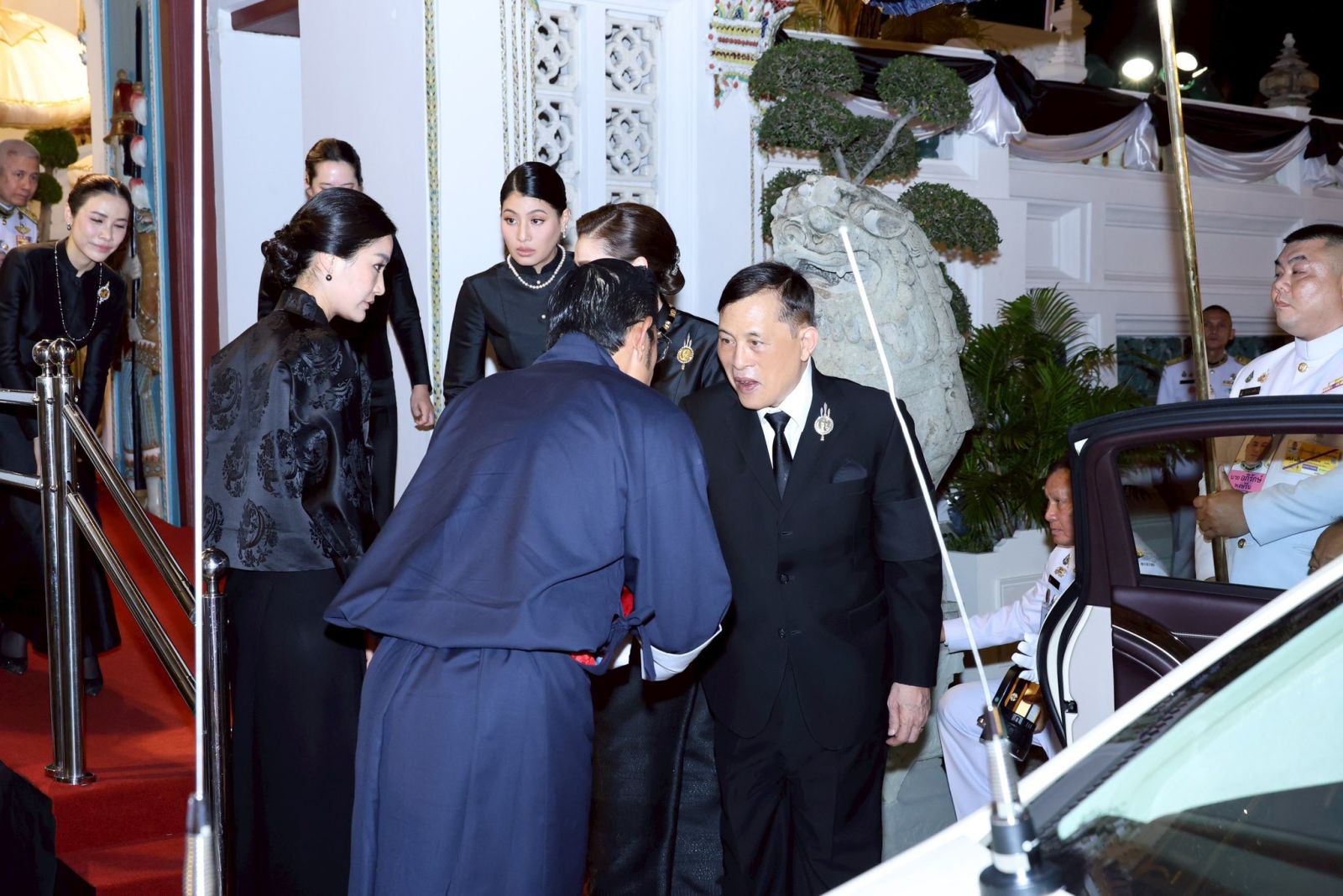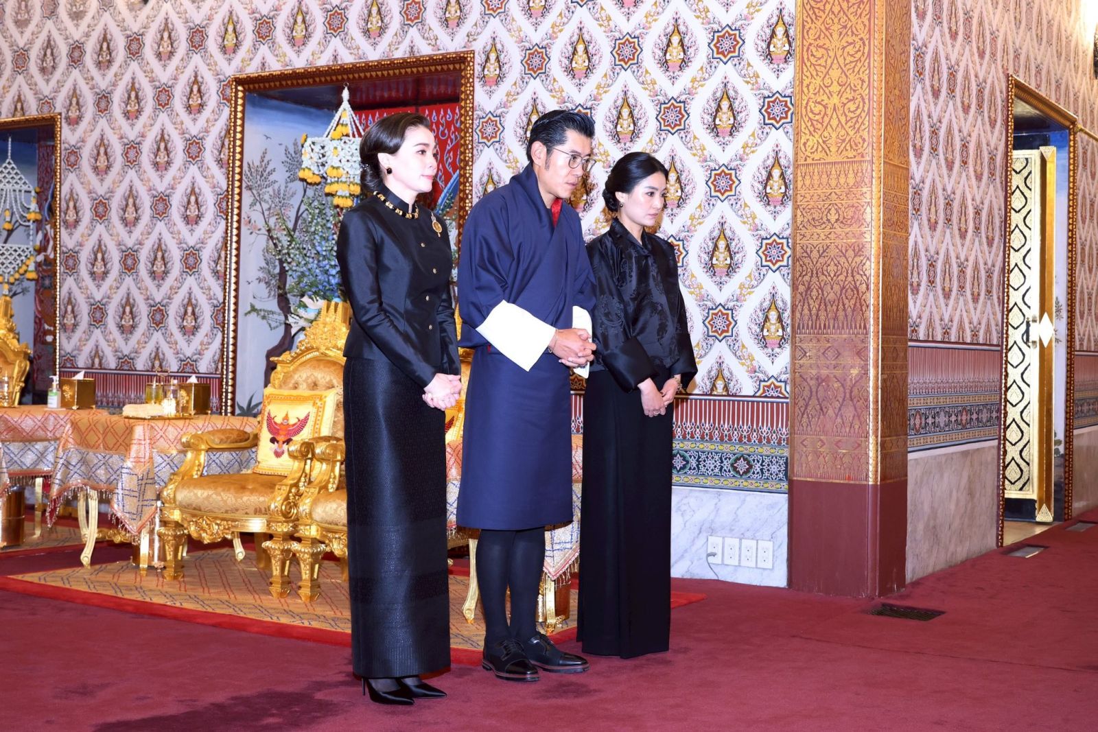 ในการนี้ สมเด็จพระเจ้าลูกเธอ เจ้าฟ้าสิริวัณณวรี นารีรัตนราชกัญญา และท่านผู้หญิงพลอยไพลิน เจนเซนเฝ้าทูลละอองธุลีพระบาทรับเสด็จ ณ พระที่นั่งดุสิตมหาปราสาท พระบรมมหาราชวัง