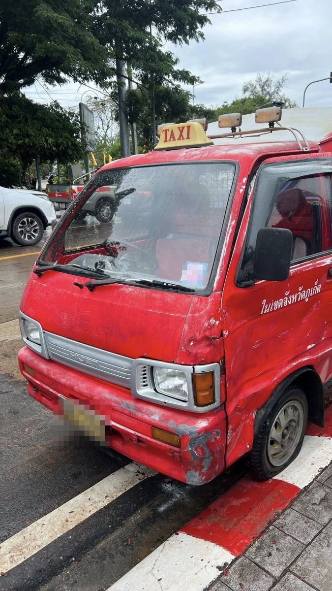 ที่เกิดเหตุอยู่บริเวณสี่แยกไฟแดง พบรถรถกระบะยี่ห้อโตโยต้า ไฮลักซ์ รีโว่ สีเทา ป้ายทะเบียน กรุงเทพมหานคร ลักษณะเฉี่ยวชนกับ รถรับจ้าง 4 ล้อเล็ก ยี่ห้อไฮเจ็ต สีแดง ทะเบียนป้ายเหลืองภูเก็ต