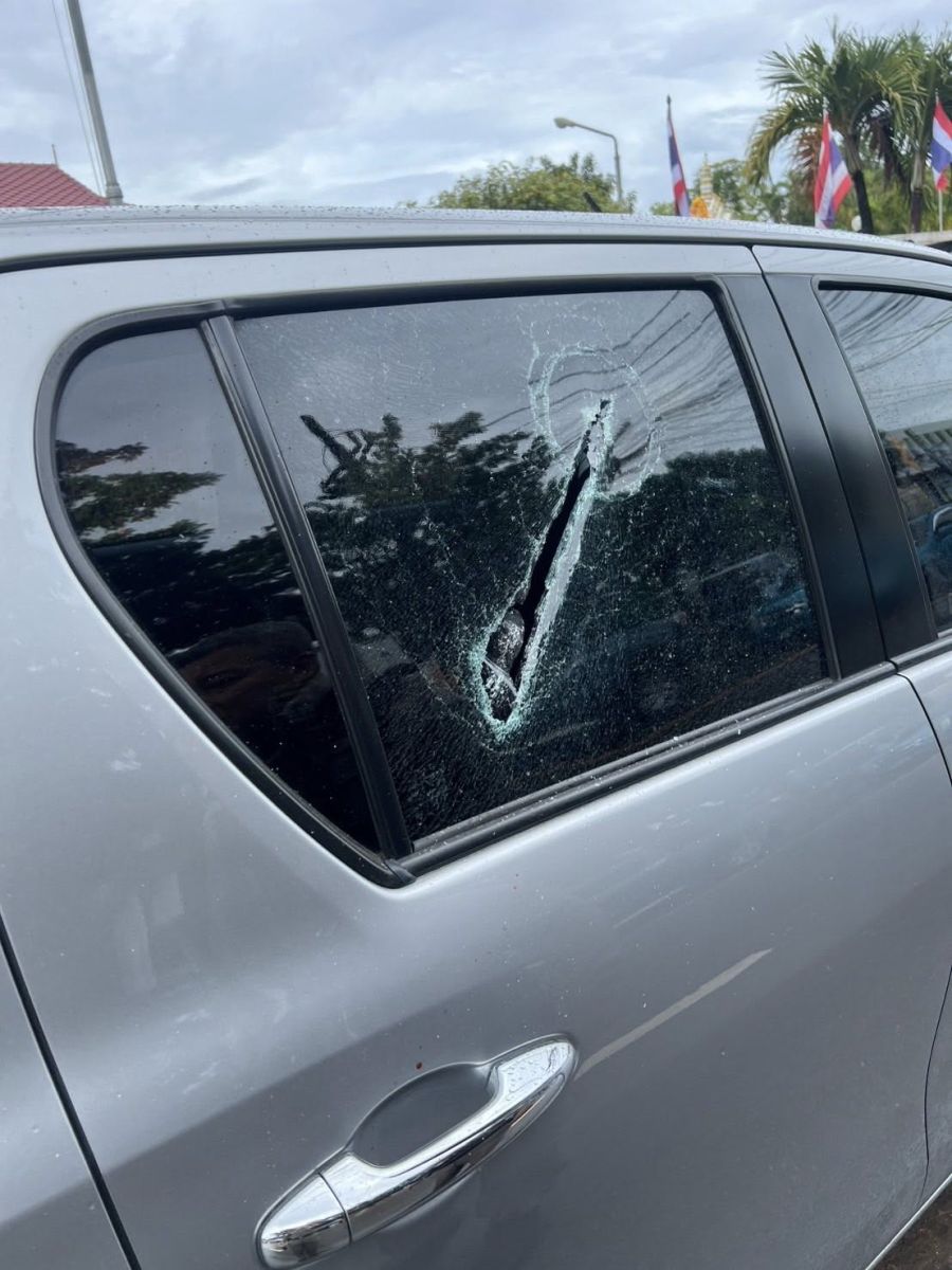 พ่อเฒ่าโชเฟอร์รถรับจ้างหัวร้อน คว้ามีดพร้ากระหน่ำฟันกระจกรถ สนง.อัยการจังหวัดพังเสียหาย หลังเกิดอุบัติเหตุรถเฉี่ยวชนกัน จ.ภูเก็ต