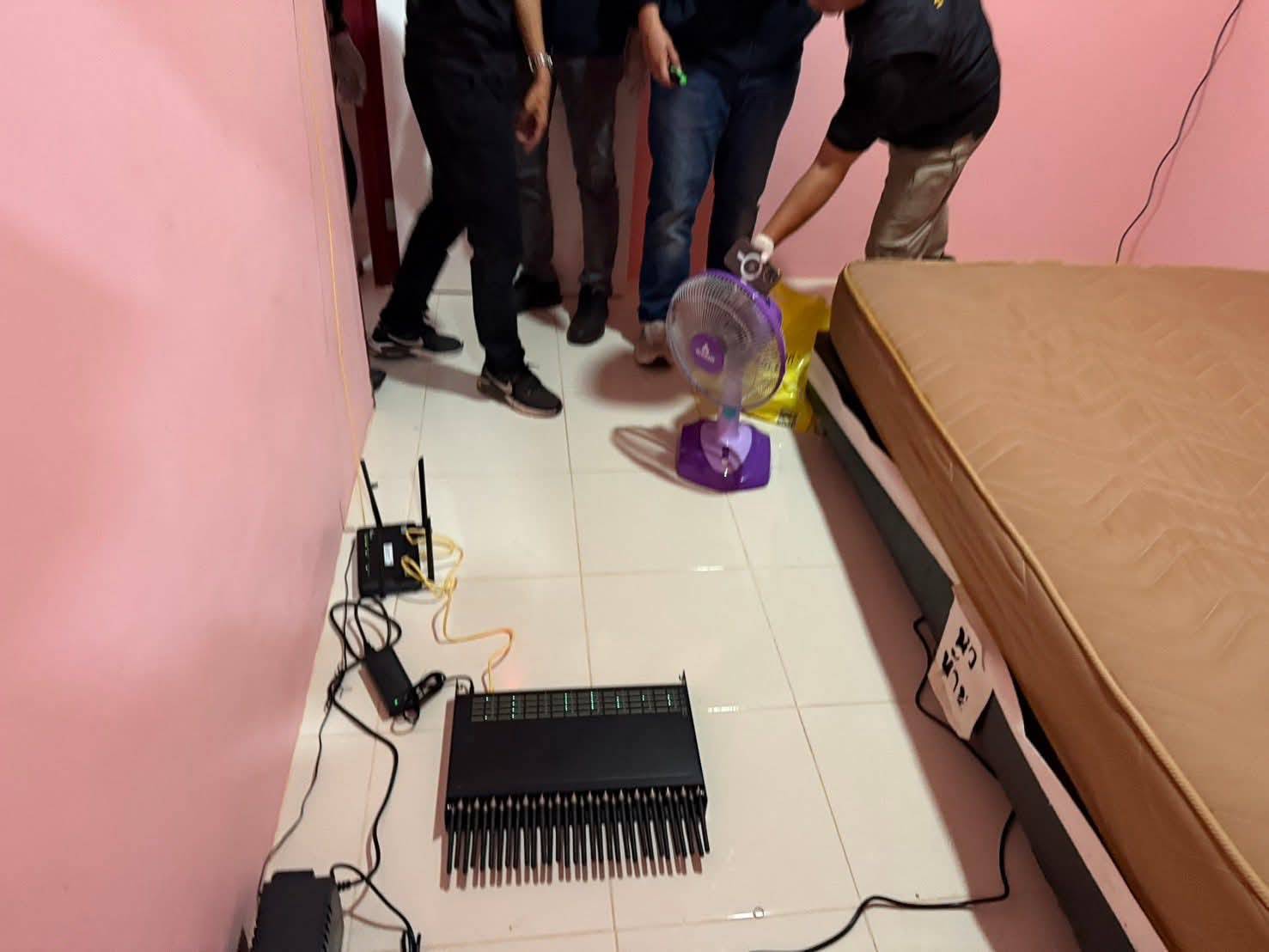 ซึ่งรวมถึง เครื่องแปลงสัญญาณ Sim Box ซิมการ์ดโทรศัพท์จำนวนมาก และอุปกรณ์สื่อสารอื่น ๆ