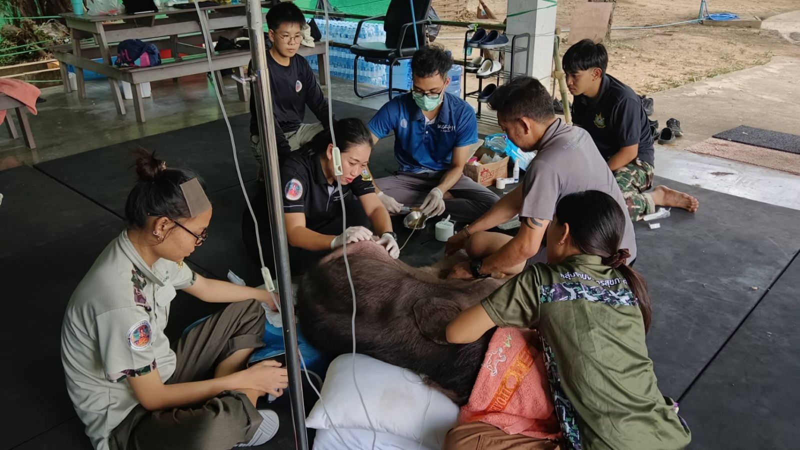 ทีมสัตวแพทย์นำโดย สพ.ญ.ณฐนน ปานเพ็ชร หัวหน้าเขตห้ามล่าสัตว์ป่าบึงฉวากและศูนย์พัฒนาการจัดการสัตว์ป่าบึงฉวาก, สพ.ญ.มัชฌมณ แก้วพฤหัสชัย หัวหน้าศูนย์ช่วยเหลือสัตว์ป่าที่ 2 (กระบกคู่) และ น.สพ.นภัส เสวกวรรณ นายสัตวแพทย์ กลุ่มงานจัดการสุขภาพสัตว์ป่า สำนักอนุรักษ์สัตว์ป่า ได้เตรียมความพร้อมในการติดตามอาการอย่างใกล้ชิดตลอด 24 ชั่วโมง พร้อมเครื่องมือและอุปกรณ์ทางการแพทย์ครบครันเพื่อเตรียมรับมือกับภาวะฉุกเฉินที่อาจเกิดขึ้นได้ทุกขณะ