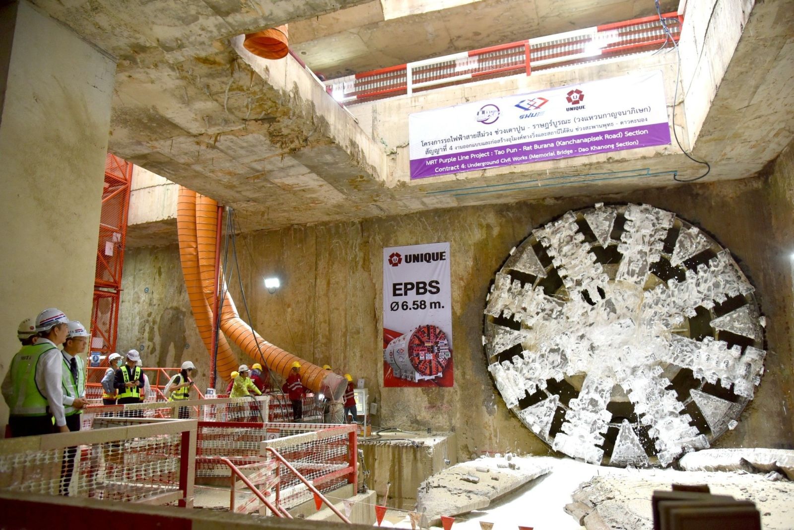วันนี้ (31 ตุลาคม 2568) นายมนตรี เดชาสกุลสม ประธานกรรมการการรถไฟฟ้าขนส่งมวลชนแห่งประเทศไทย (รฟม.) และนายกาจผจญ อุดมธรรมภักดี ผู้ว่าการ รฟม. พร้อมด้วย นายกิตติกร ตันเปาว์ รองผู้ว่าการ (วิศวกรรมและก่อสร้าง) รฟม. ร่วมลงพื้นที่โครงการรถไฟฟ้าสายสีม่วง ช่วงเตาปูน - ราษฎร์บูรณะ (วงแหวนกาญจนาภิเษก) สัญญาที่ 4 ช่วงสะพานพุทธ - ดาวคะนอง บริเวณสถานีสะพานพุทธฯ เพื่อตรวจสอบและติดตามความคืบหน้าการขุดเจาะอุโมงค์ของ Tunnel Boring Machine (TBM) No.1 “หัวเจาะปสุตา” ที่เจาะทะลุจากสถานีโรงพยาบาลสมเด็จพระปิ่นเกล้า ผ่านอาคารปล่องระบายอากาศที่ 6 (IVS06) ไปยังสถานีวงเวียนใหญ่ และเจาะทะลุเข้าสู่สถานีสะพานพุทธฯ เรียบร้อยแล้ว