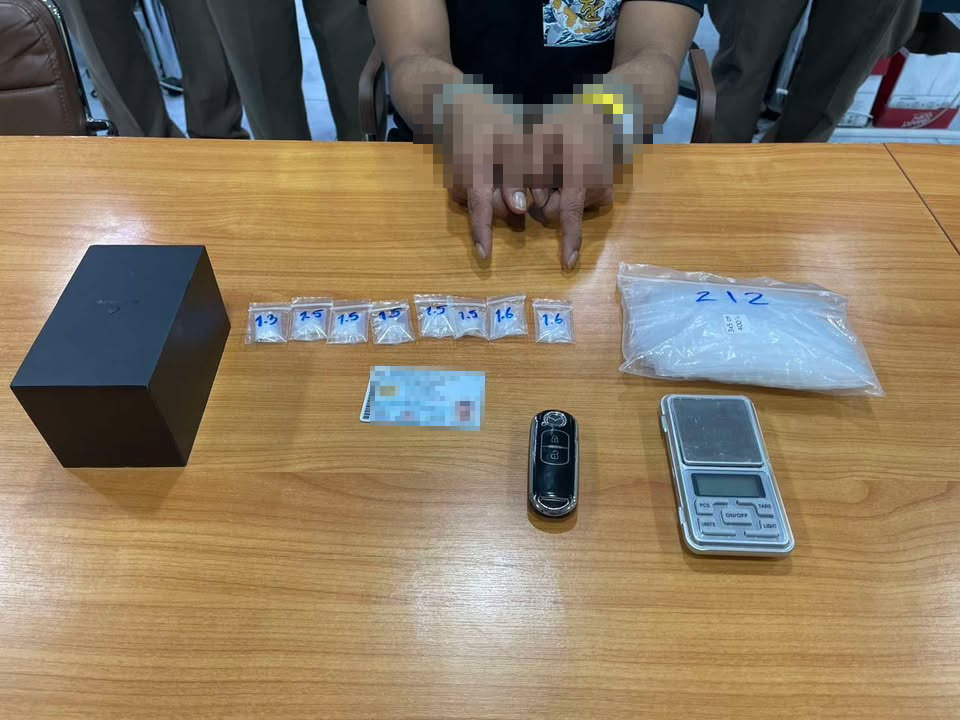 ระหว่างปฏิบัติหน้าที่ พบรถยนต์เก๋ง สีดำ ขับผ่านด้วยท่าทางมีพิรุธ เจ้าหน้าที่จึงเรียกตรวจ ผู้ขับขี่ เป็นชายไทย อายุ 41 ปี จากการตรวจค้นกระเป๋าาะพาย พบยาไอซ์ 8 ถุง น้ำหนักรวมประมาณ 12 กรัม เครื่องชั่งดิจิทัล 1 เครื่อง และถุงพลาสติกใสกว่า 200 ใบ ซุกซ่อนในกล่องสีดำ