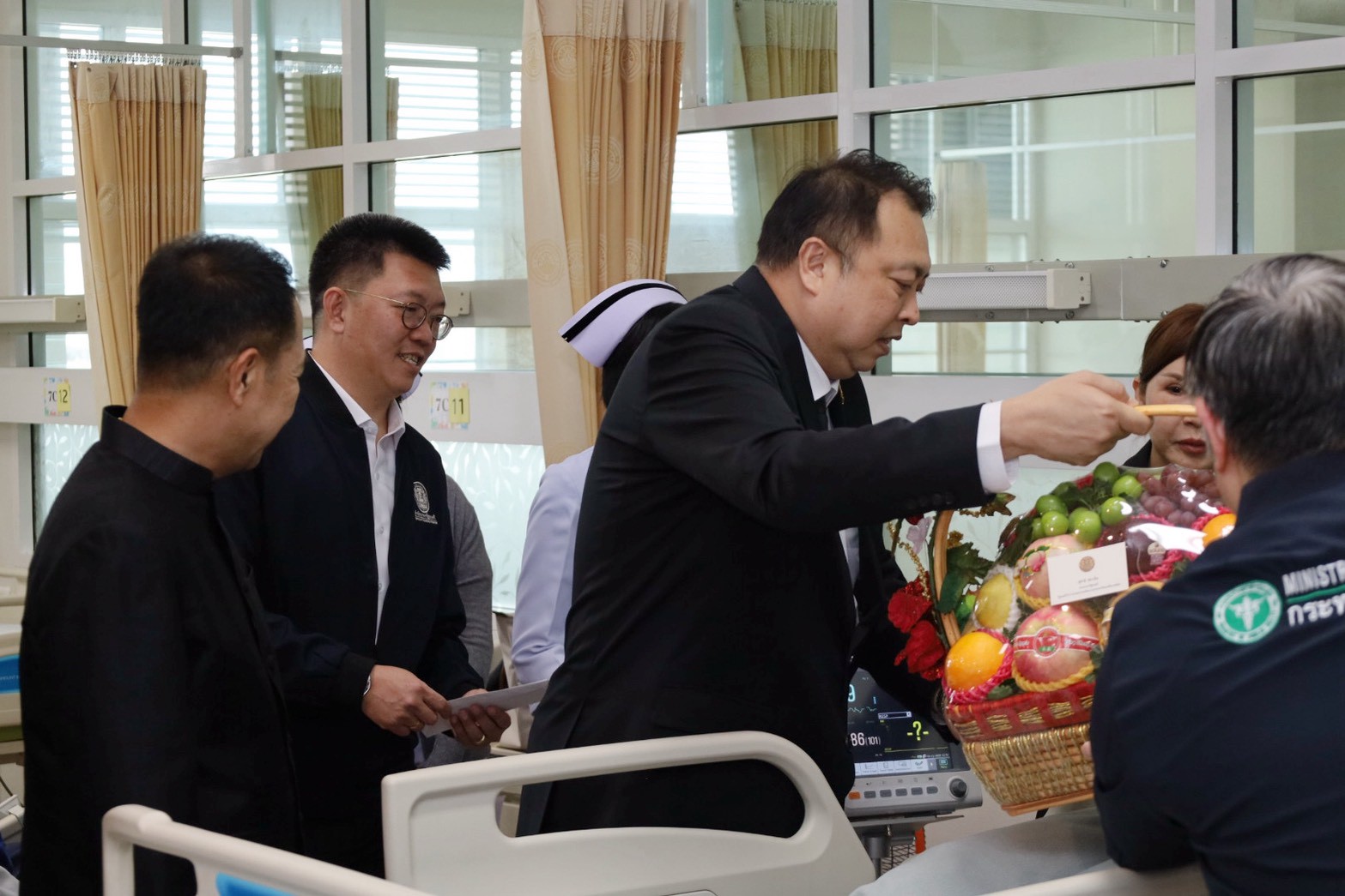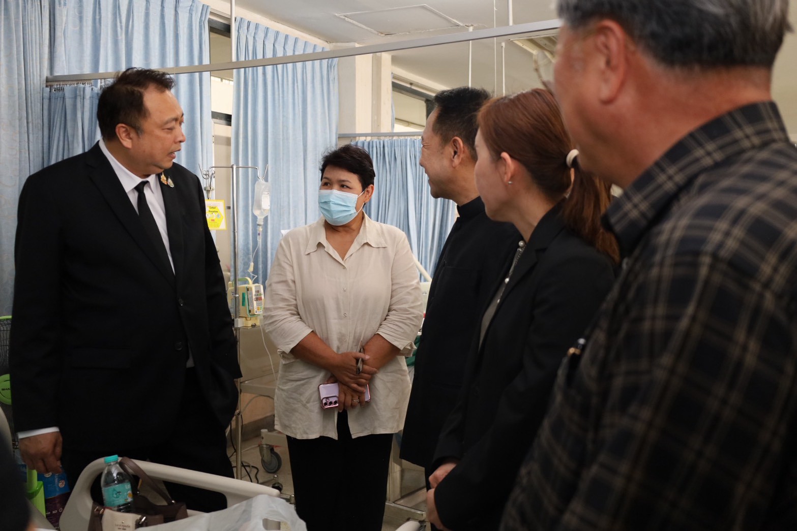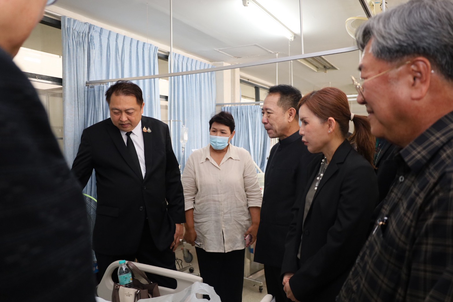 เมื่อวันเสาร์ที่ 1 พฤศจิกายน 2568 เวลา 12.30 น. นายสุชาติ ชมกลิ่น รองนายกรัฐมนตรี และรัฐมนตรีว่าการกระทรวงทรัพยากรธรรมชาติและสิ่งแวดล้อม พร้อมด้วยนายนริศ นิรามัยวงศ์ ผู้ว่าราชการจังหวัดชลบุรี นพ.วิศิษฎ์ ผลสวัสดิ์ รองนายแพทย์สาธารณสุขจังหวัดชลบุรี และคณะผู้บริหารโรงพยาบาลมหาวิทยาลัยบูรพา ได้เดินทางเข้าเยี่ยมผู้ได้รับบาดเจ็บอย่างใกล้ชิด เพื่อให้กำลังใจและติดตามความช่วยเหลืออย่างเร่งด่วน