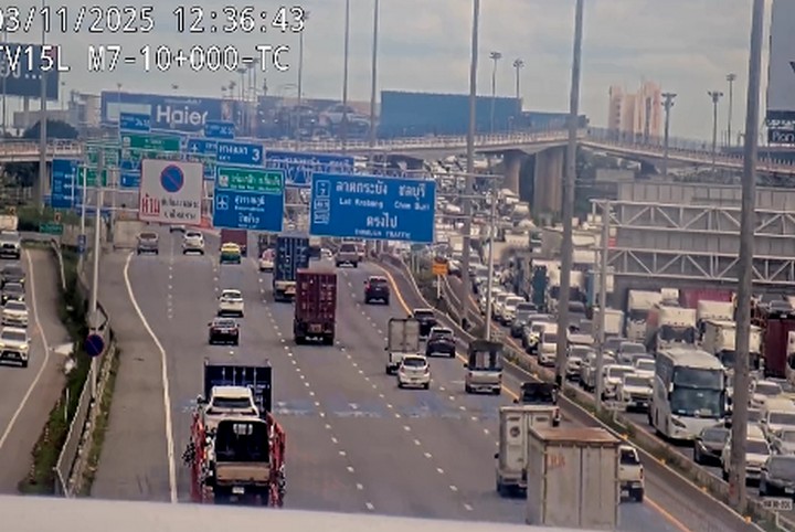 12.35 น. มอเตอร์เวย์ (ทล.7) มุ่งหน้ากรุงเทพ กม.9+200 มีงานซ่อมบำรุง รถติด ท้ายแถวสะสม กม.12