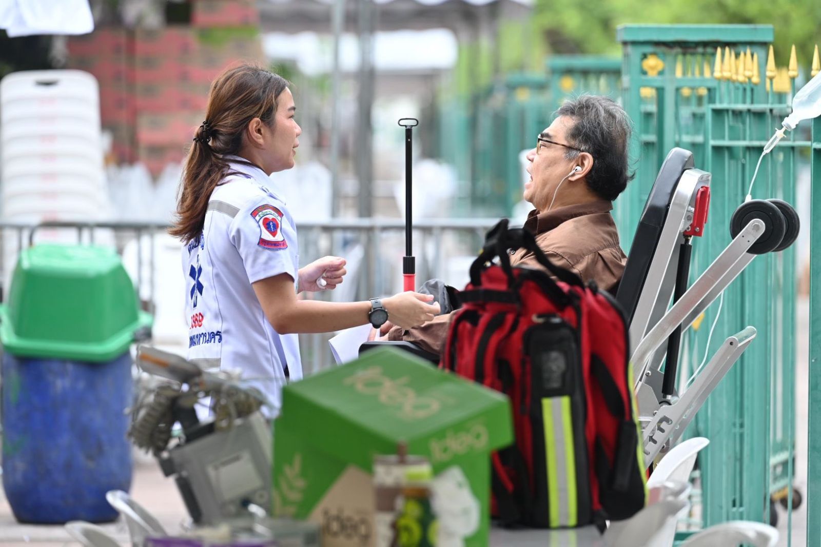 ทีมแพทย์-พยาบาลได้ตรวจเยี่ยมและให้คำแนะนำในการดูแลสุขภาพประชาชนตลอดวัน โดยมีผู้รับบริการทางการแพทย์รวม 968 คน ประกอบด้วย การนำส่งโรงพยาบาล 1 คน ผู้ป่วยที่มีอาการทั่วไป 30 คน การปฐมพยาบาลโดยไม่ต้องรับการตรวจจากแพทย์ 482 คน และการรับเวชภัณฑ์ 485 คน