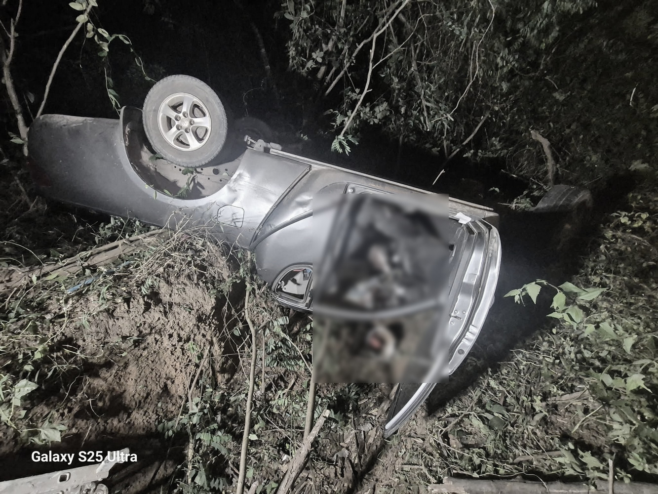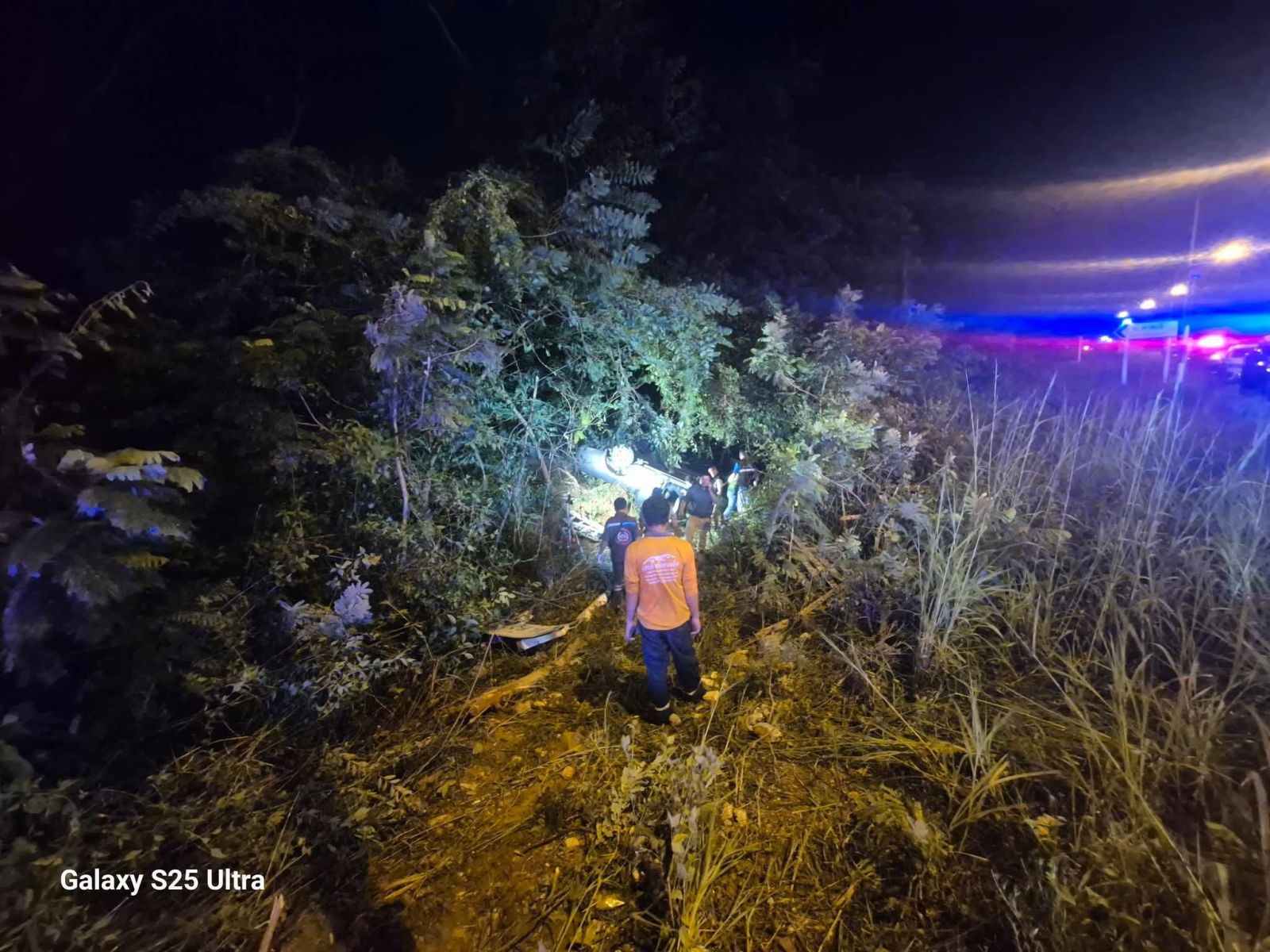 รถกระบะพลิกคว่ำลงข้างทาง หนุ่มวัย 29 ปีเสียชีวิตร่างติดค้างในยานพาหนะ จ.มุกดาหาร
