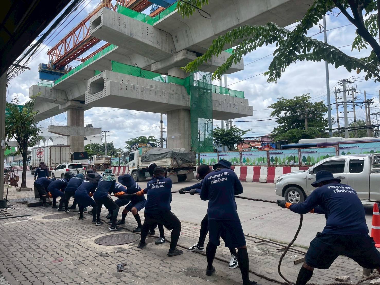 การรถไฟฟ้าขนส่งมวลชนแห่งประเทศไทย (รฟม.) โดย โครงการรถไฟฟ้าสายสีม่วง ช่วงเตาปูน - ราษฎร์บูรณะ (วงแหวนกาญจนาภิเษก) ร่วมกับ เรือนจำกลางคลองเปรม กรมราชทัณฑ์ นำผู้ก้าวพลาดออกลอกท่อระบายน้ำ และบ่อพัก ในแนวสายทางโครงการฯ ช่วงถนนสมเด็จพระเจ้าตากสิน ถนนสุขสวัสดิ์ และถนนเลียบทางพิเศษกาญจนาภิเษก ระยะทางรวมกว่า 2,530 เมตร เพื่อขุดลอกเศษวัสดุต่างๆ ที่อุดตันออกจากท่อระบายน้ำ เพื่อเพิ่มประสิทธิภาพการระบายน้ำให้ดียิ่งขึ้น นอกจากนี้ รฟม. ยังกำชับให้ผู้รับจ้างทุกสัญญายังคงขุดลอกท่อระบายน้ำ และบ่อพัก โดยตลอดแนวสายทางโครงการฯ ตั้งแต่บริเวณถนนสามเสน ถนนพระสุเมรุ ถนนมหาไชย ถนนประชาธิปก ถนนสมเด็จพระเจ้าตากสิน และถนนสุขสวัสดิ์ อย่างต่อเนื่องเป็นประจำทุกเดือน รวมทั้งเน้นย้ำให้ผู้รับจ้างเฝ้าระวังพื้นที่เสี่ยงต่างๆ ที่อาจเกิดน้ำท่วมขังได้ง่ายในช่วงที่มีฝนตกหนัก ควบคู่กับการจัดเตรียมเจ้าหน้าที่ และเครื่องสูบน้ำให้พร้อมใช้งานอยู่เสมอ เพื่อช่วยเหลือและอำนวยความสะดวกให้แก่ประชาชน รวมถึงให้ดูแลความสะอาดพื้นที่ก่อสร้างโดยจัดเก็บวัสดุก่อสร้าง อุปกรณ์และเครื่องจักร จัดหาผ้าใบปกคลุมไว้ให้มิดชิด ป้องกันไม่ให้ดินตะกอนและเศษวัสดุจากการก่อสร้างไปอุดตันท่อระบายน้ำ