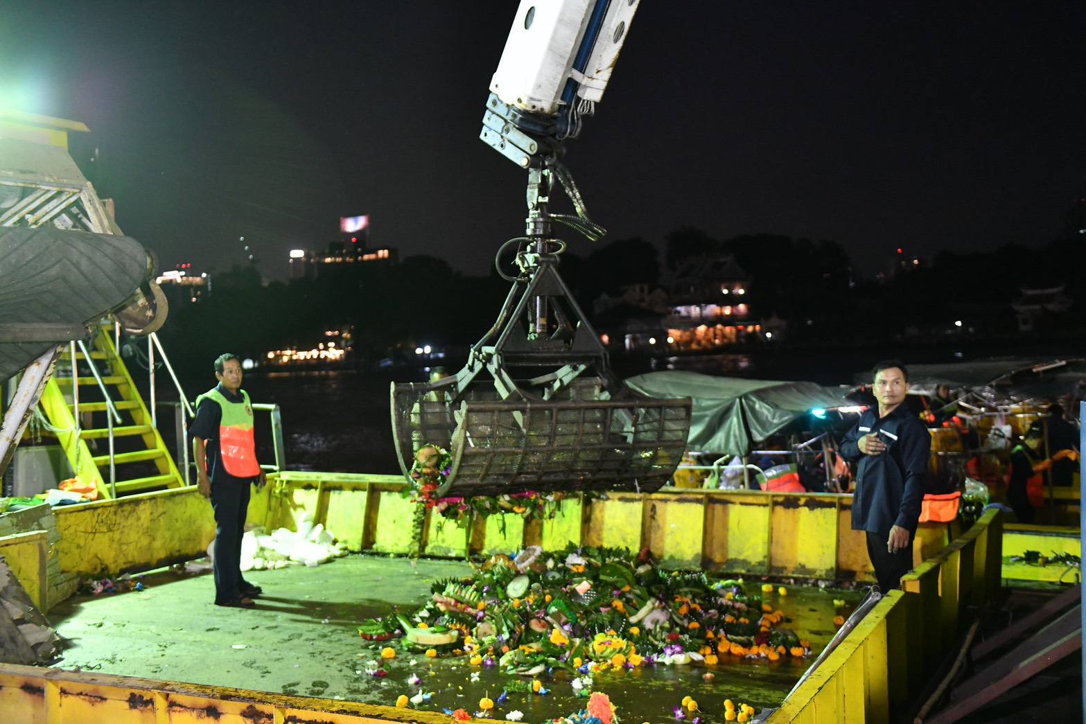 ในส่วนของแม่น้ำเจ้าพระยา ตั้งแต่สะพานพระราม 8 ถึงสะพานพระราม 9 ระยะทางประมาณ 15 กิโลเมตร กรุงเทพมหานครได้จัดเจ้าหน้าที่ จำนวน 163 คน เรือเก็บขยะ 28 ลำ เรือสนับสนุนอีก 6 ลำ รวม 34 ลำ และรถบรรทุก 8 คัน ปฏิบัติงานต่อเนื่องตั้งแต่เวลา 20.00 น. ของวันที่ 5 พฤศจิกายน จนถึงเวลา 05.00 น. ของวันที่ 6