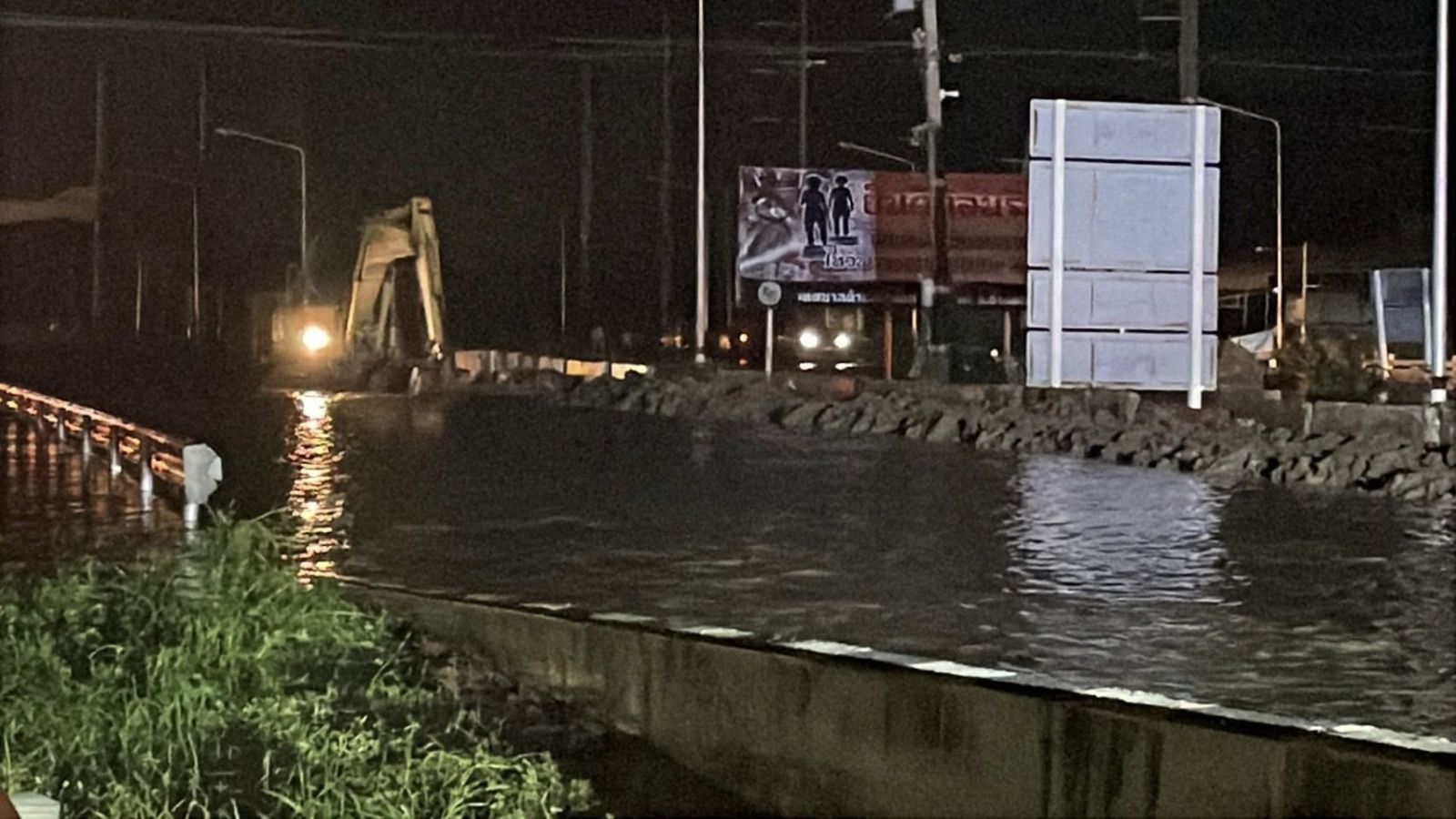 ส่วนคอสะพานป่าโมก น้ำเริ่มลดระดับ แต่ยังไม่อนุญาตให้รถสัญจร