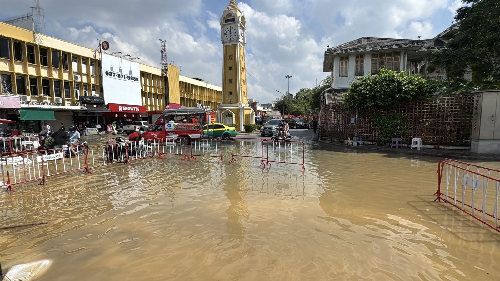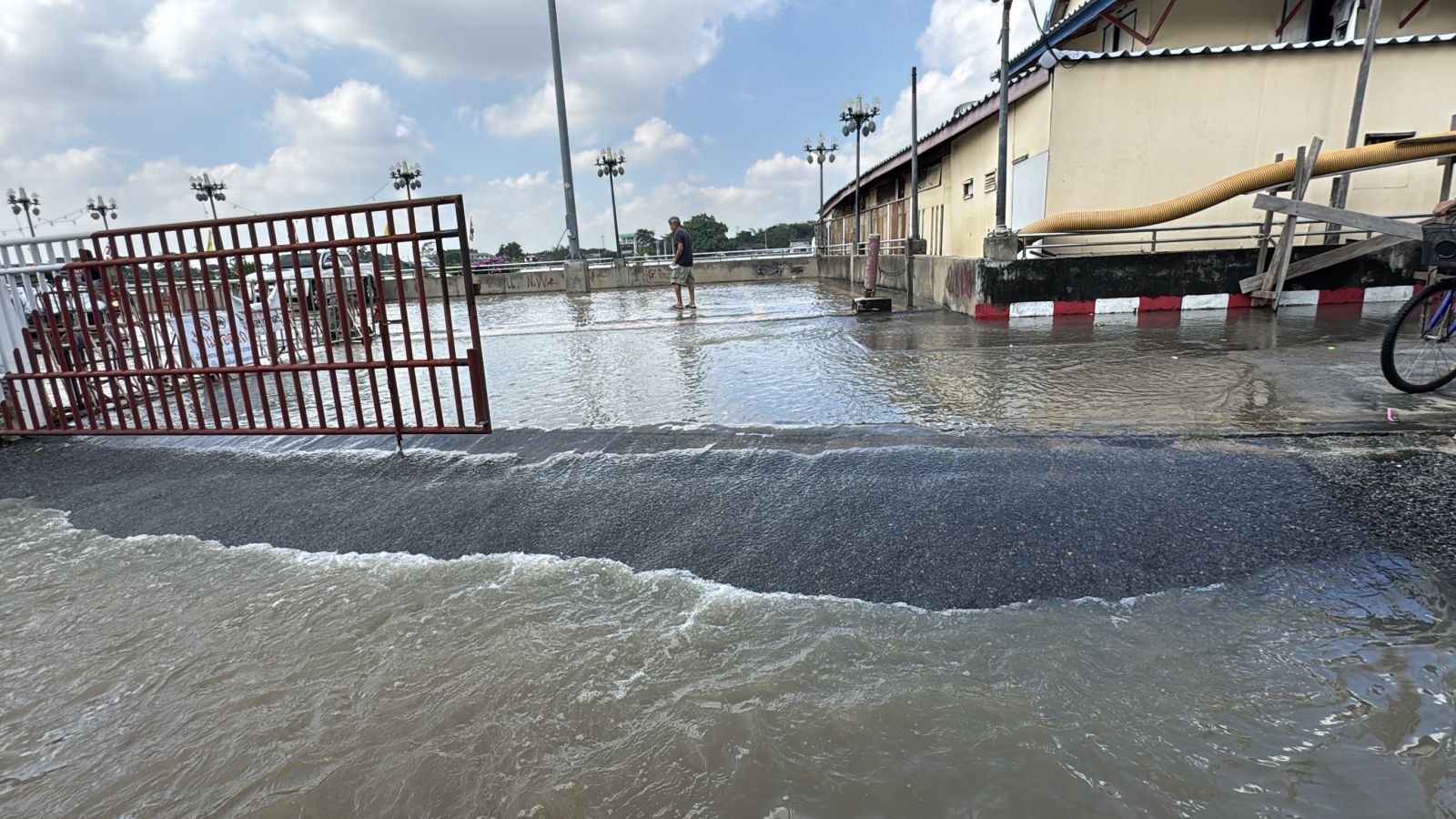 เมื่อเวลา 10.30 น.วันที่ 9 พ.ย.68 เจ้าหน้าที่เทศบาลนครนนทบุรี ได้รับแจ้งจากประชาชนว่าแนวกระสอบทรายกั้นน้ำพัง 3 จุด ทำน้ำจากแม่น้ำเจ้าพระยาเข้าท่วมพื้นที่ชุมชนวัดบางขวาง เหตุเกิดบริเวณริมเขื่อนท่าน้ำนนทบุรี ต.สวนใหญ่ อ.เมืองนนทบุรี