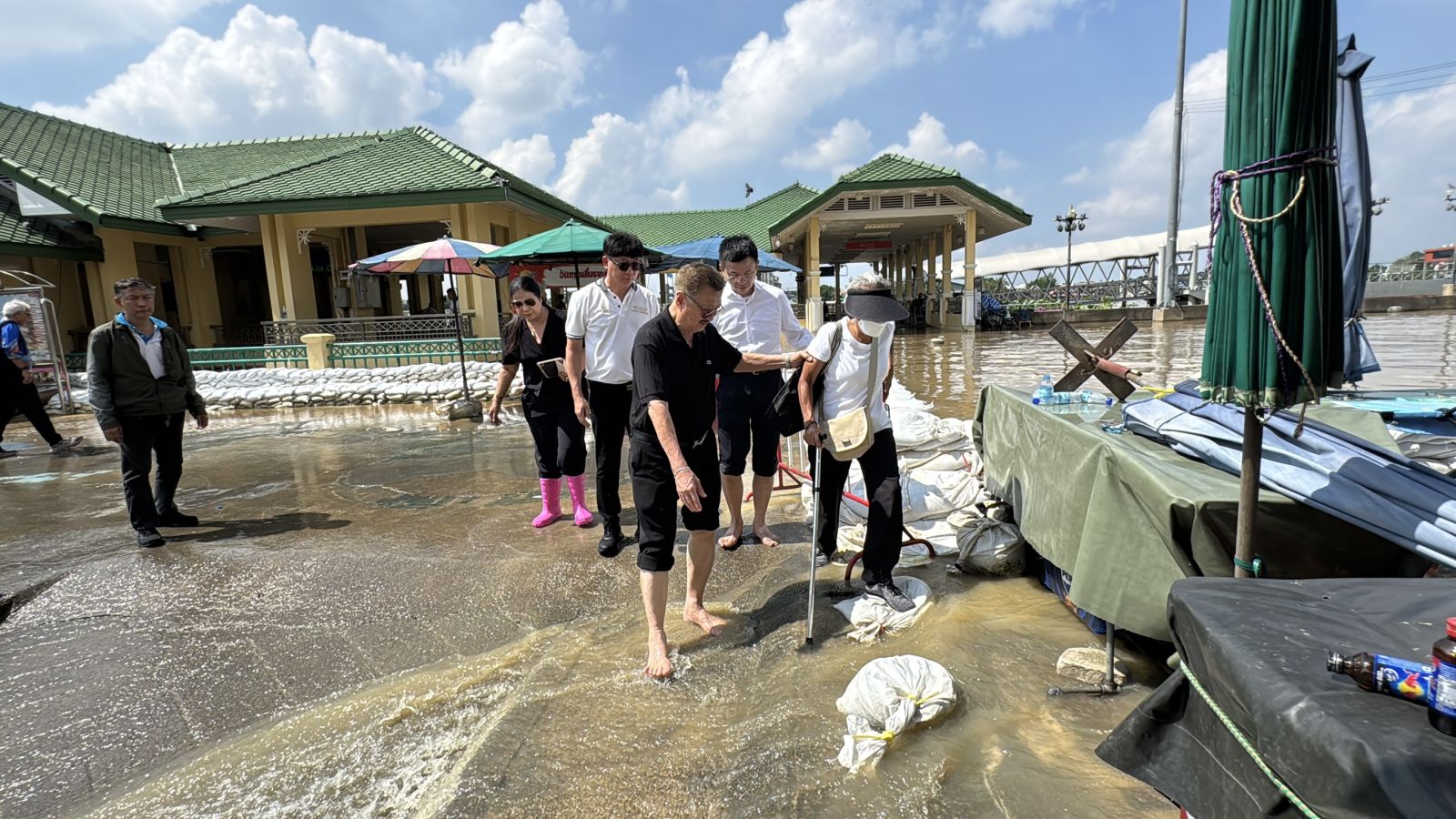 เจ้าหน้าที่เทศบาลนครนนทบุรี นำกำลังประมาณ 50 นายลงพื้นที่สำรวจ พบแนวกระสอบทรายเดิมถูกน้ำดันจนกระสอบทรายล้ม