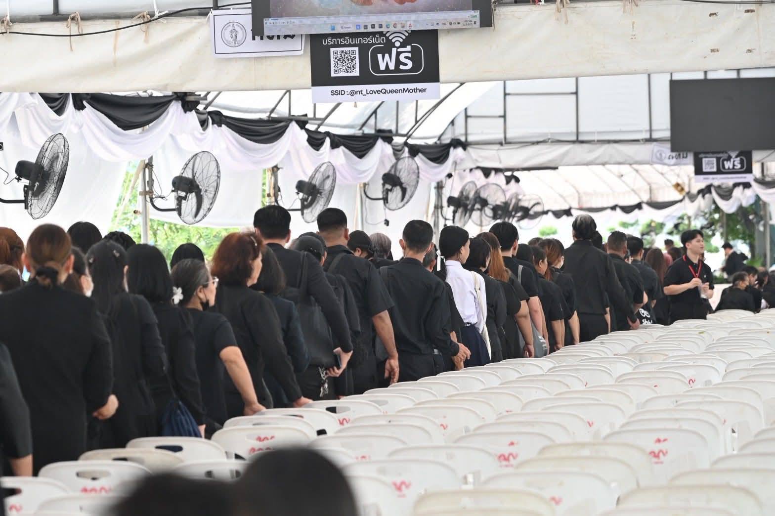 ทั้งนี้ กทม. เปิดให้ประชาชนเข้าจุดพักคอยได้ตั้งแต่เวลา 07.30 น. จนถึงเวลา 11.00 น. วันนี้ มีประชาชนเข้ากราบถวายบังคมแล้วกว่า 3,457 คน ท่ามกลางบรรยากาศที่เปี่ยมด้วยความสำนึกในพระมหากรุณาธิคุณและความอาลัยยิ่ง