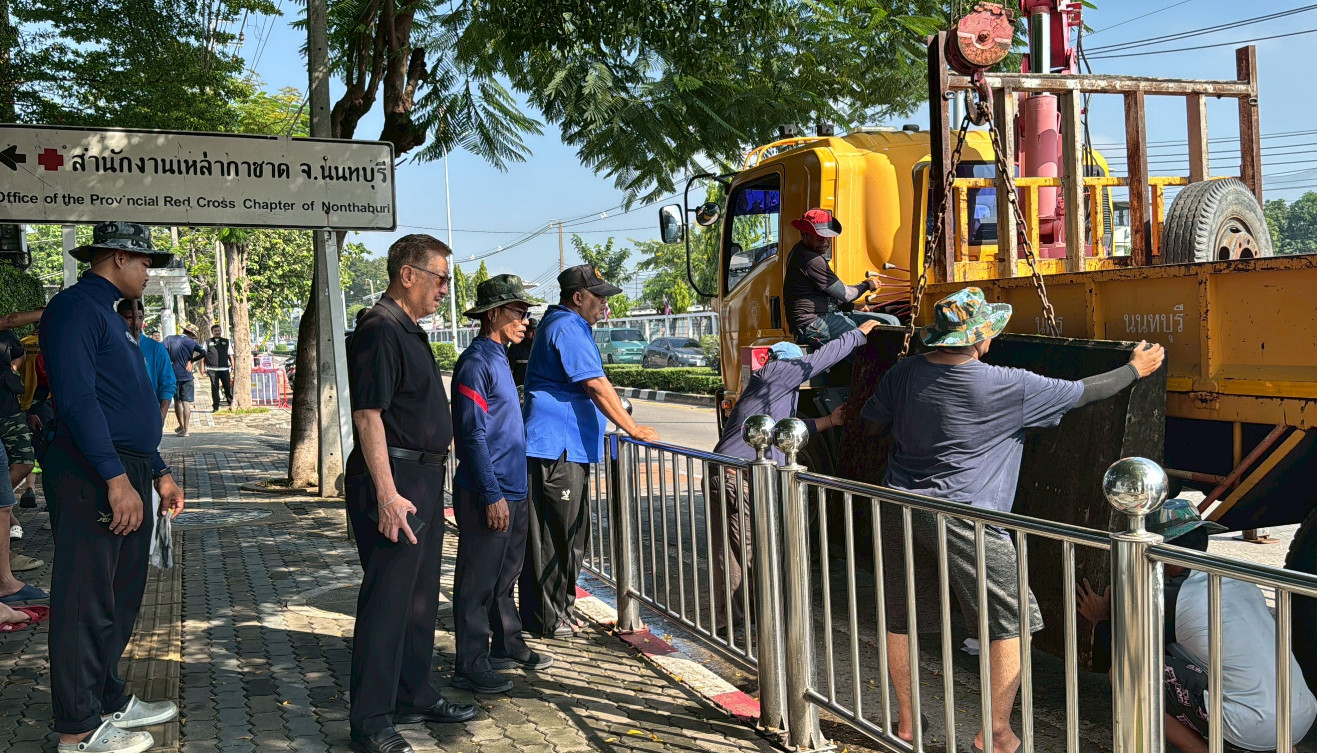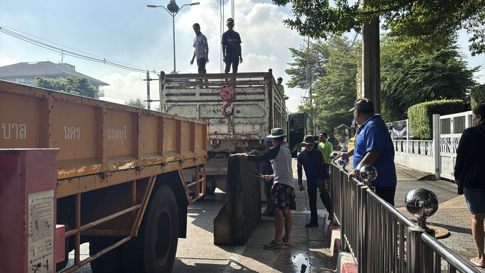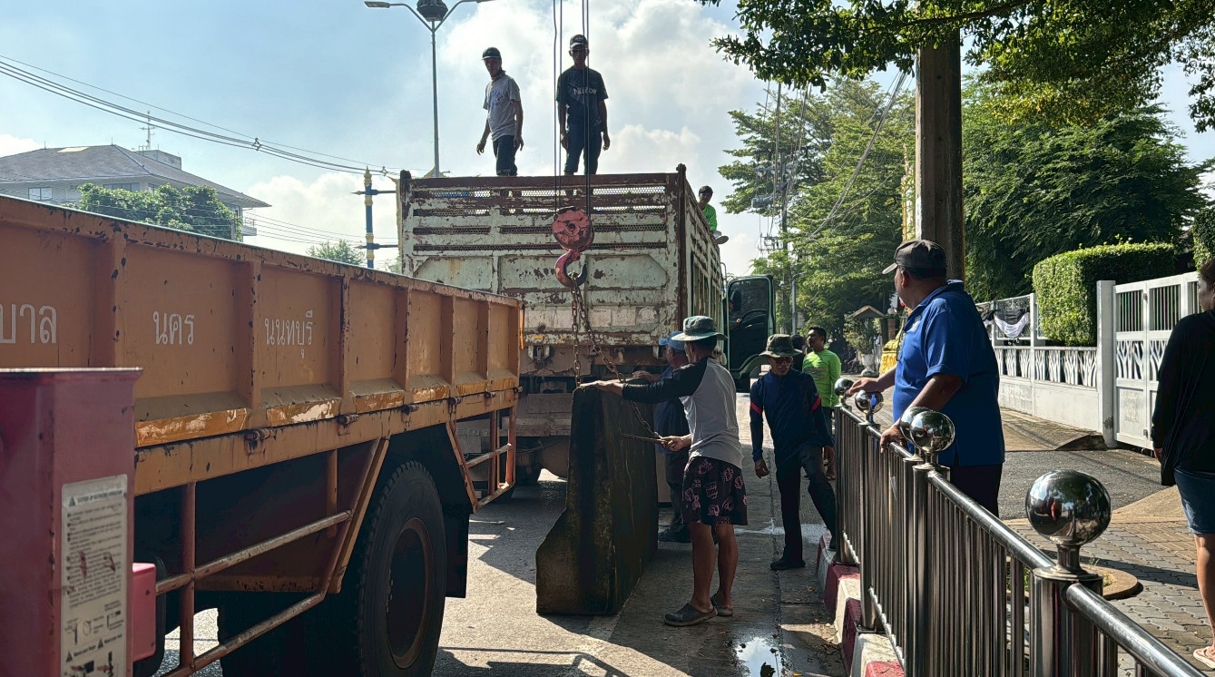 เมื่อเวลา 15.00 น.วันที่ 9 พ.ย. 68 นายสมนึก ธนเดชากุล นายกเทศมนตรีนครนนทบุรี ระดมกำลังเจ้าหน้าที่สำนักกองช่างนครนนทบุรี สร้างคันกั้นน้ำ ริมถนนนนทบุรี 1 ต.สวนใหญ่ อ.เมืองนนทบุรี ตั้งแต่ด้านหน้าจวนผู้ว่าราชการจังหวัดนนทบุรี จนถึงด้านหน้ากรมราชทัณฑ์ ป้องกันน้ำล้นเข้าท่วมสถานที่สำคัญ และพื้นที่ชั้นในเมืองนนทบุรี