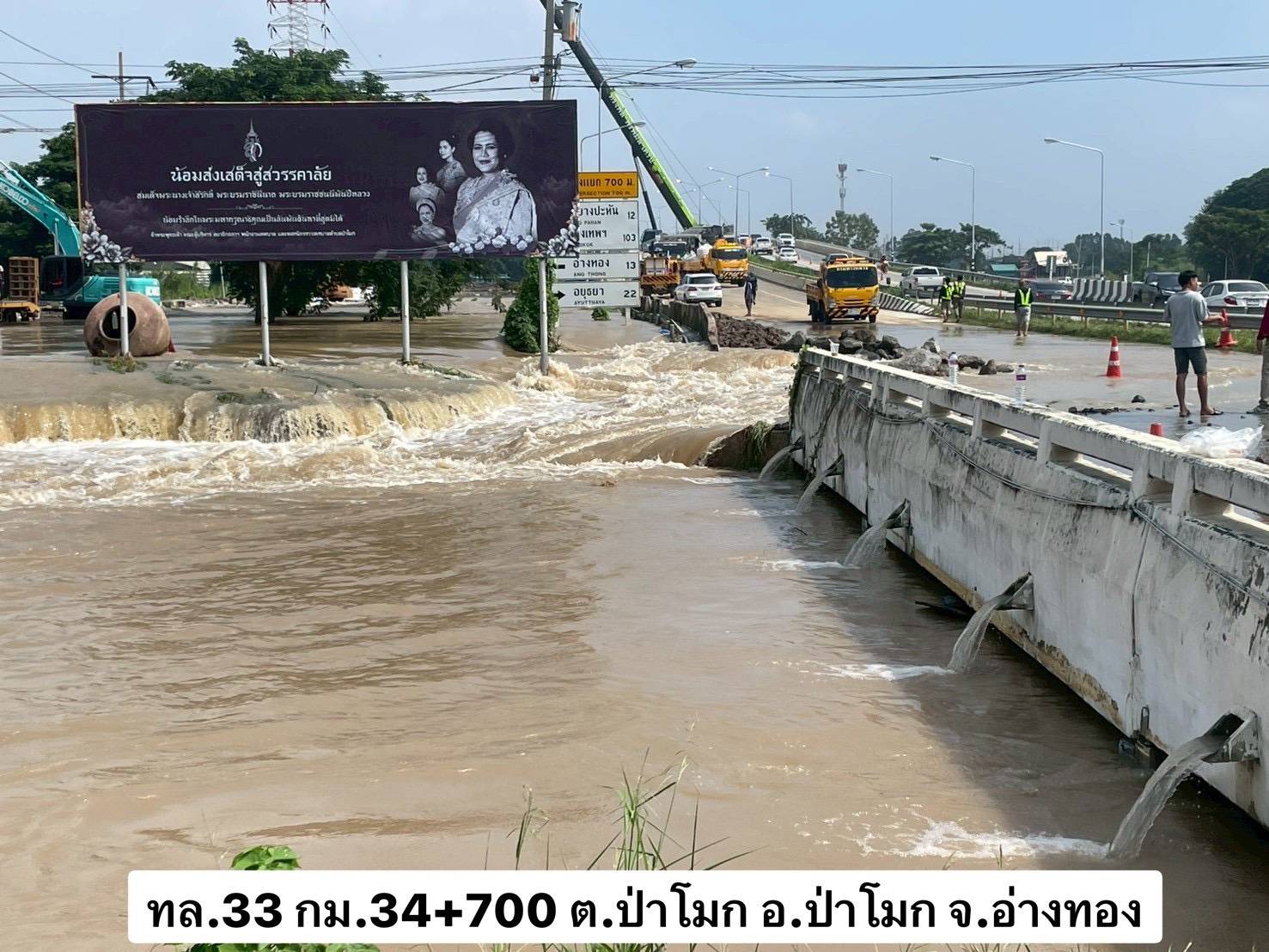 วันที่ 9 พฤศจิกายน 2568 กรมทางหลวง (ทล.) โดยแขวงทางหลวงอ่างทอง หมวดทางหลวงป่าโมก ระดมกำลังเจ้าหน้าที่และเครื่องจักรกลเข้าพื้นที่ทันที ร่วมกับหน่วยงานภาคีเครือข่าย ดำเนินการป้องกันวิกฤตน้ำท่วมและรักษาเส้นทางคมนาคมให้ประชาชนสามารถใช้สัญจรได้อย่างปลอดภัยที่สุด
