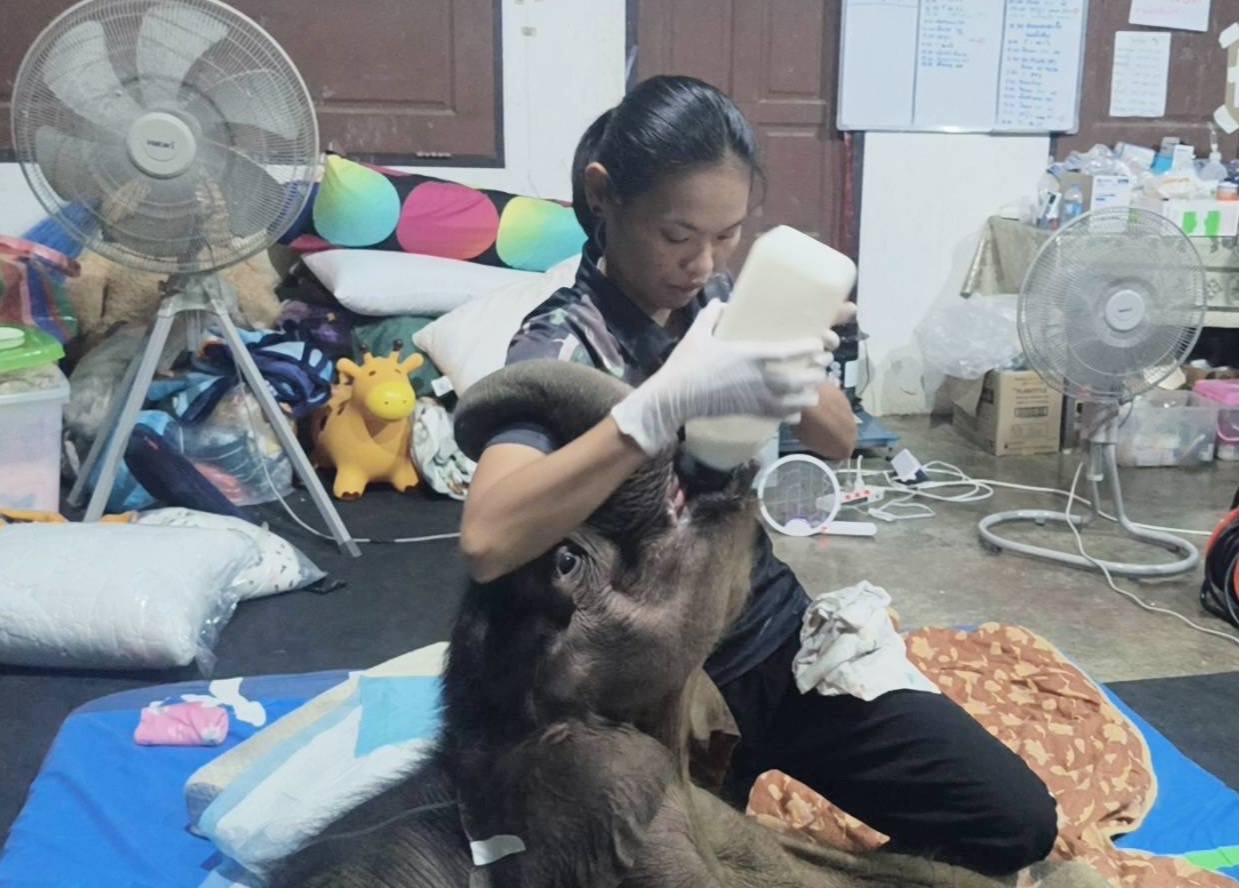 เมื่อวันที่ 9 พฤศจิกายน 2568 – สพ.ญ.ณฐนน ปานเพ็ชร นายสัตวแพทย์ชำนาญการ หัวหน้าเขตห้ามล่าสัตว์ป่าบึงฉวาก และศูนย์พัฒนาการจัดการสัตว์ป่าบึงฉวาก รายงานความคืบหน้าในการดูแลลูกช้างป่าเพศเมีย ชื่อ “ข้าวต้ม” ที่พลัดหลงจากโขลง ซึ่งขณะนี้อยู่ภายใต้การดูแลอย่างใกล้ชิดจากทีมสัตวแพทย์ผู้เชี่ยวชาญจากหลายหน่วยงาน โดยตลอด 15 ชั่วโมงที่ผ่านมา ยังไม่พบภาวะวิกฤต แต่ยังคงต้องเฝ้าระวังอาการอย่างต่อเนื่อง