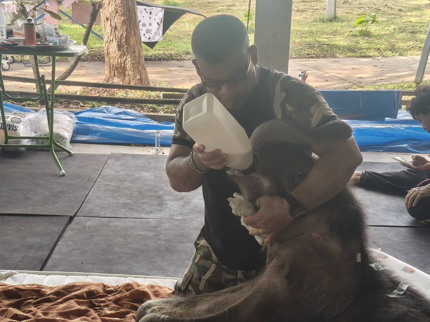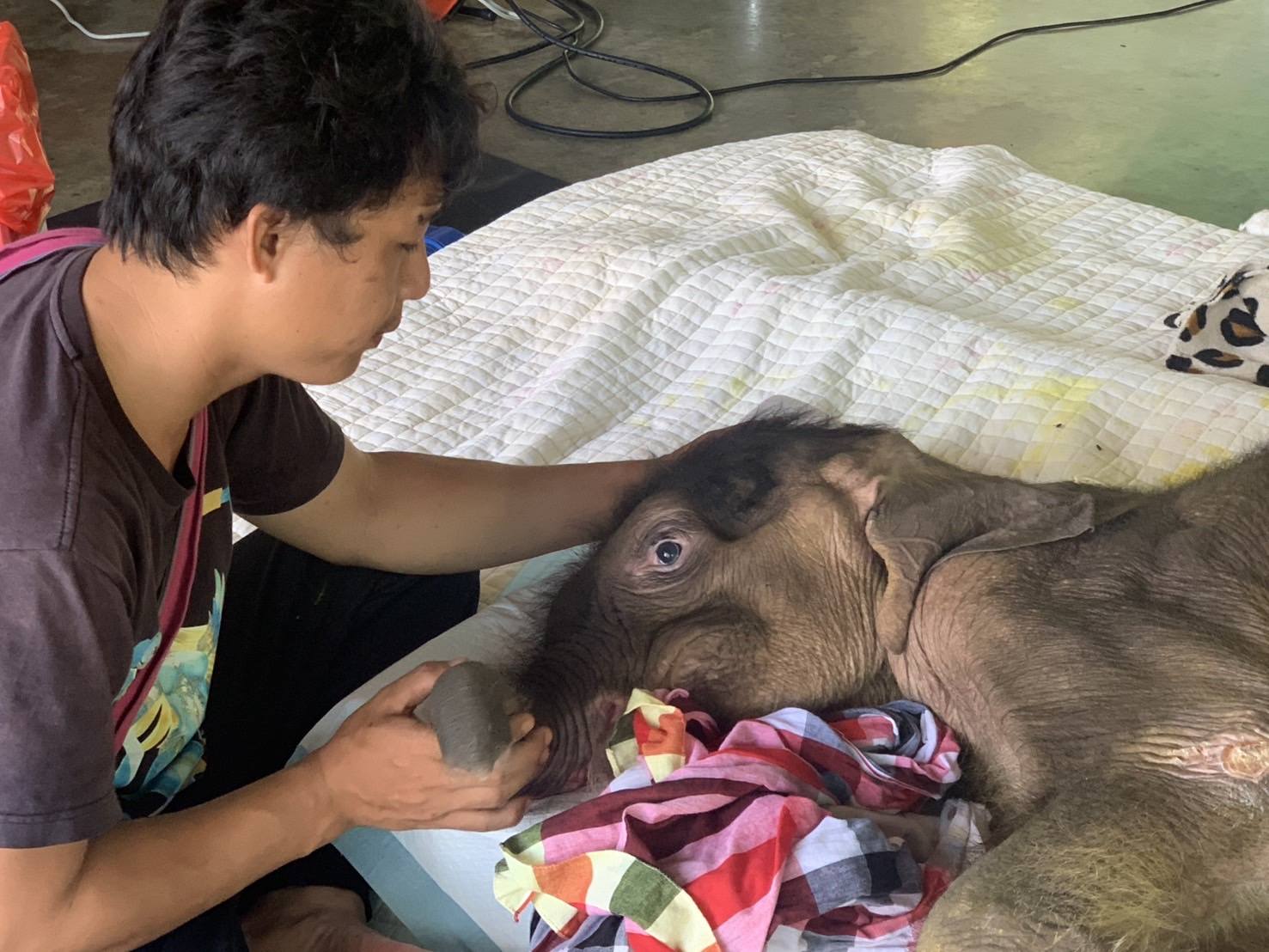 เพื่อป้องกันภาวะแทรกซ้อน ทีมสัตวแพทย์ได้ให้สารน้ำทางหลอดเลือดดำตลอดทั้งวัน ควบคู่กับการให้ยาปฏิชีวนะ ยาลดการอักเสบในระบบทางเดินอาหาร วิตามิน และยาต้านไวรัส พร้อมดูแลรักษาแผลและแผลกดทับอย่างสม่ำเสมอ ด้วยการล้างทำความสะอาดและพ่นยารักษาแผล