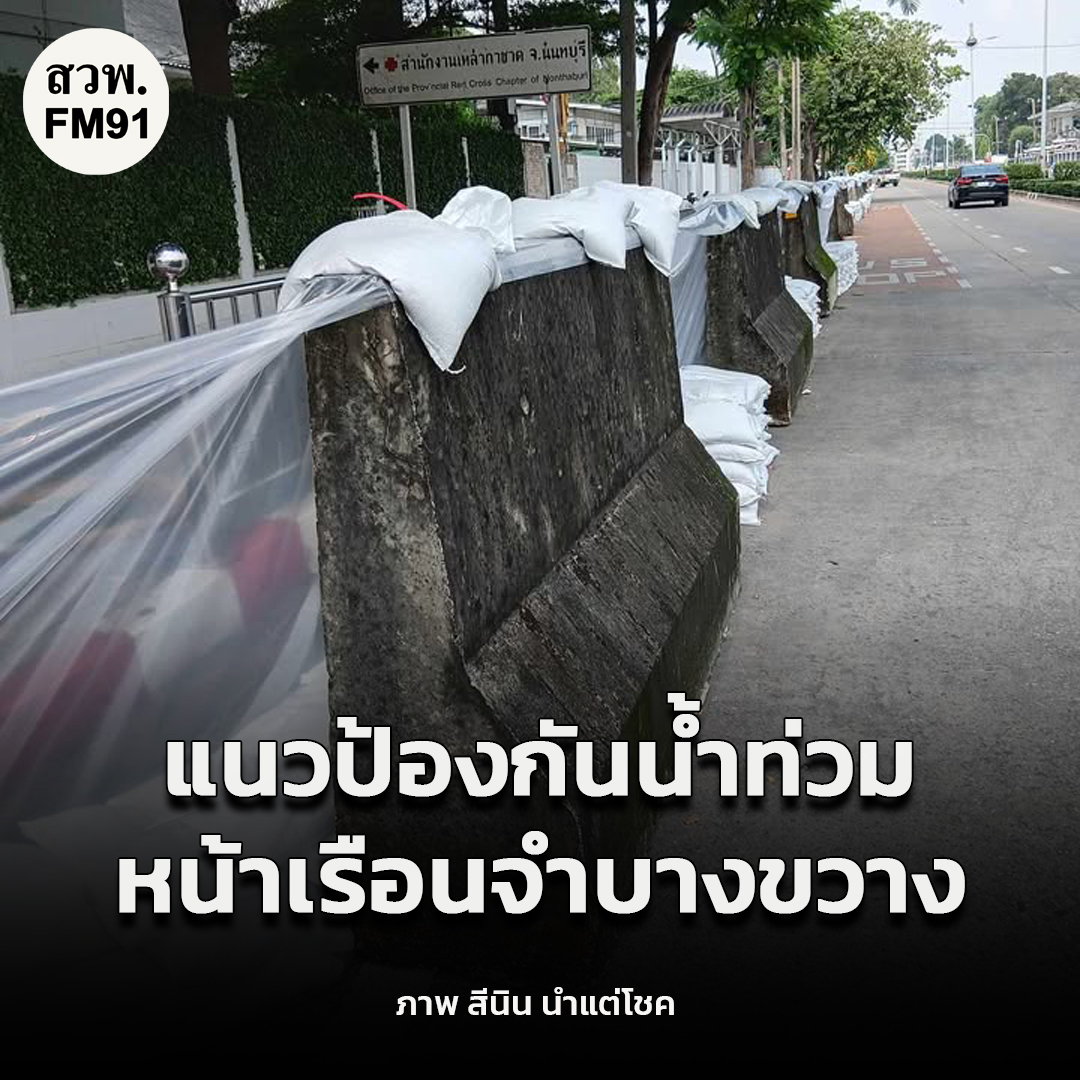 10 พ.ย.68 รายงานสถานการณ์ น้ำนนทบุรี ฝั่งเทศบาลนครนนทบุรี ขณะนี้ ยังคงเร่งเสริมกระสอบทราย ทำแนวเขื่อนป้องกันน้ำท่วม เนื่องจากน้ำเจ้าพระยาหนุนสูง และเขื่อนเจ้าพระยา ระบายน้ำลงมา รวมถึงหน้าเรือนจำบางขวาง ขณะนี้ มีการทำแนวป้องกันน้ำท่วมไว้แล้ว