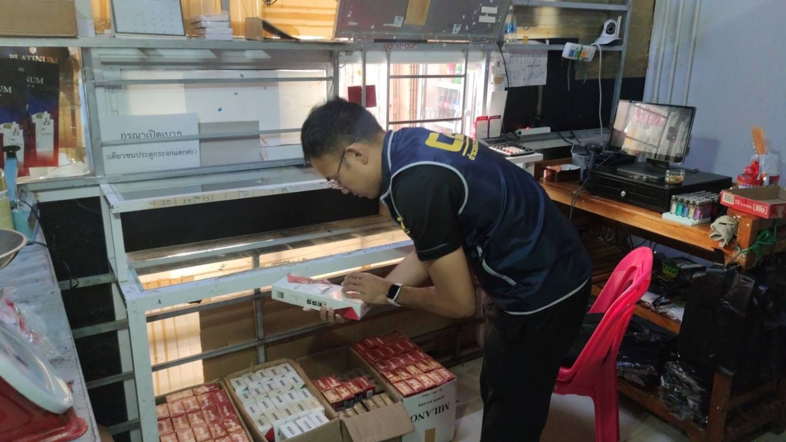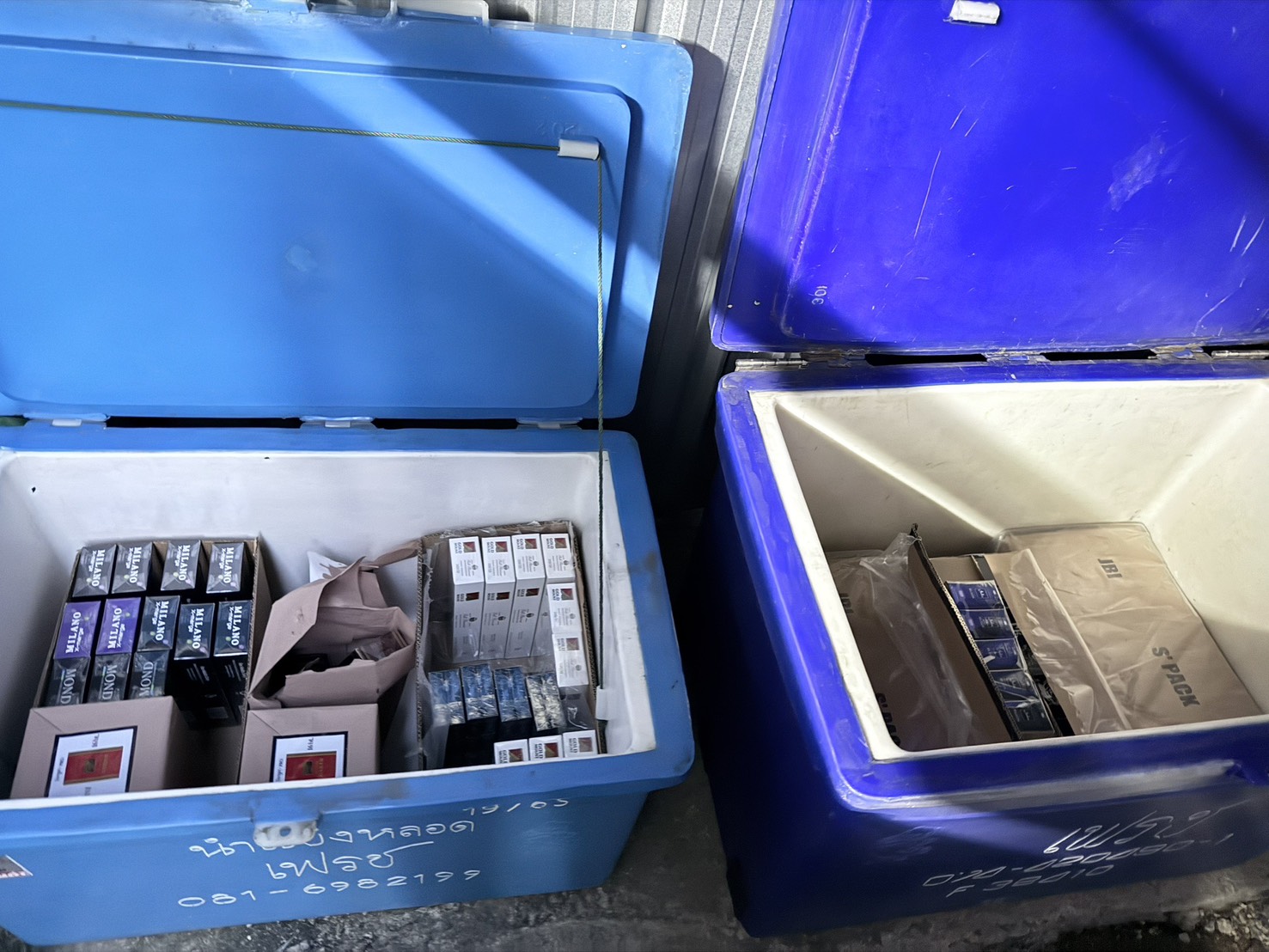 บุกตรวจค้น 2 ร้านขายของชำในพื้นที่ภาคใต้ ได้ลักลอบจำหน่ายบุหรี่เถื่อน ซ่อนในถังน้ำแข็ง