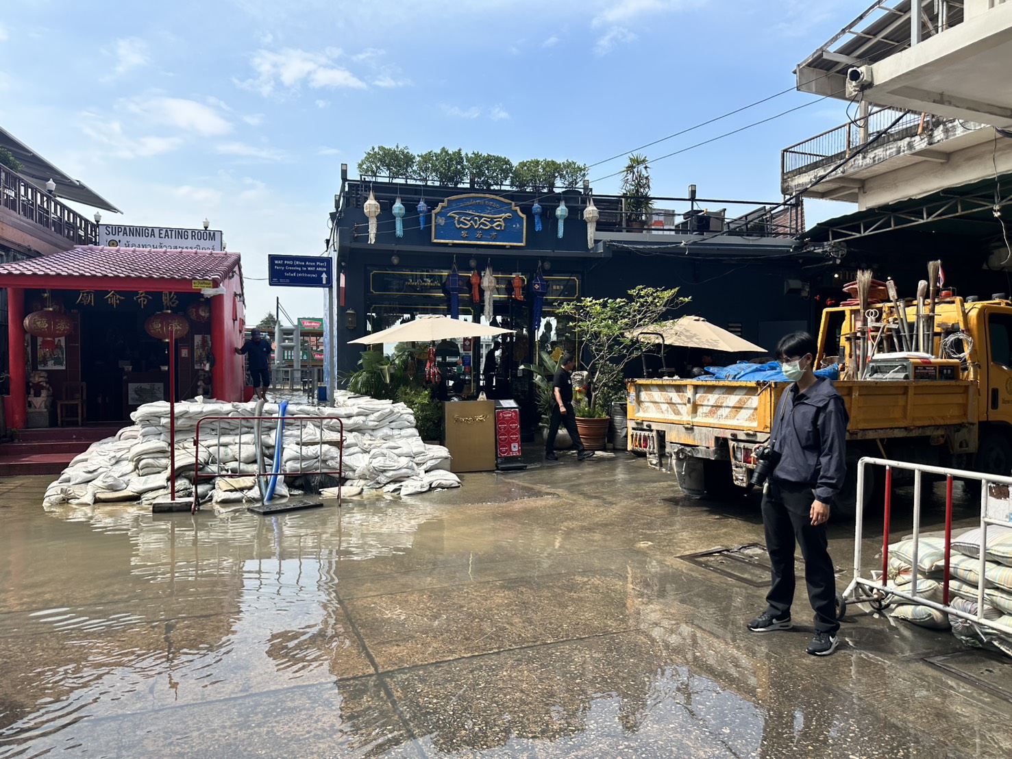 ทั้งนี้ สำนักการระบายน้ำและสำนักงานเขต ได้เรียงกระสอบทรายป้องกันน้ำทะเลหนุนและน้ำเหนือหลากแล้วเสร็จ 100% โดยมีระดับความสูง +2.40 ถึง +2.70 ม.รทก. พร้อมดูแลแนวป้องกันที่อยู่ระหว่างการก่อสร้างและแนวฟันหลอให้สามารถใช้งานได้ในภาวะฉุกเฉิน