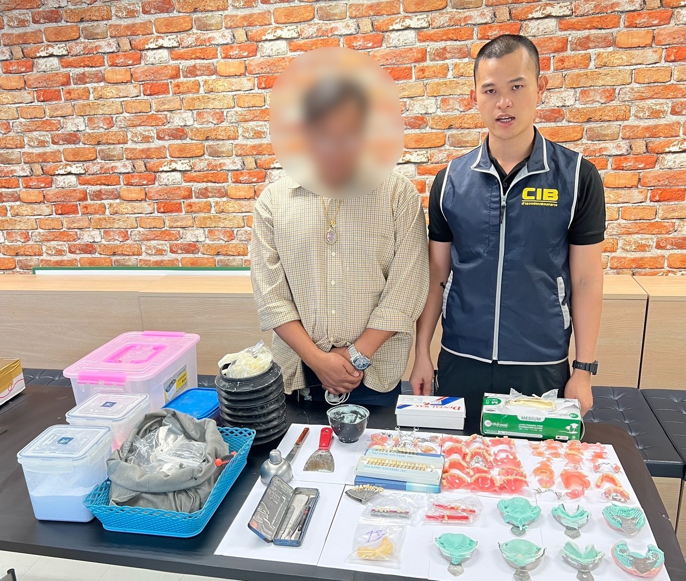 เจ้าหน้าที่ตำรวจกองกำกับการ 4 กองบังคับการปราบปรามการกระทำความผิดเกี่ยวกับการคุ้มครองผู้บริโภค ได้เฝ้าระวังและสืบสวน และระดมกวาดล้างทันตแพทย์เถื่อน สถานพยาบาลเถื่อน ในห้วงเดือนพฤศจิกายน 2568 จำนวน 4 จุด อาทิ ในบ้านเอื้ออาทรเสมาฟ้าคราม /จ.ปทุมธานี /บริเวณตลาดสดย่านอนุสาวรีย์ชัยสมรภูมิ กรุงเทพมหานคร /ร้านฟันปลอม ภายในอพาร์ทเมนต์แห่งหนึ่ง ซอยกันตนา ต.บางใหญ่ อ.เมือง จ.นนทุบรี หลังเข้าตรวจสอบจับกุมผู้ต้องหารายหนึ่ง รับว่าตนเองจบการศึกษาระดับชั้น ปวช. เคยมีความรู้การทำฟันปลอมเนื่องจากเคยทำงานอยู่ในห้องปฏิบัติการทำฟันของเอกชน ซึ่งหลังจากสถานการณ์โรคโควิดระบาด ห้องปฏิบัติการดังกล่าวปิดตัวลง จึงได้มาดำเนินกิจการทำ-ซ่อมฟันปลอมที่ร้านดังกล่าว ทำมาแล้วเป็นเวลา 2 ปี มีผู้มาใช้บริการวันละประมาณ 4-5 วัน
