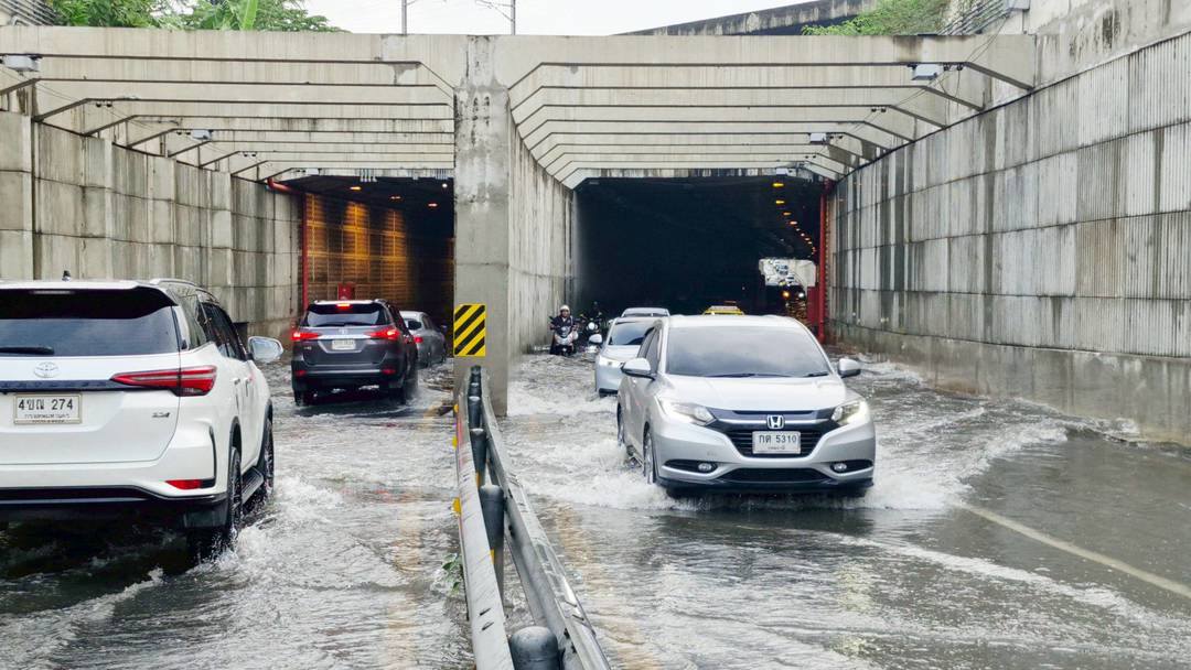 เนื่องจากมีน้ำท่วมขังทั้งสองฝั่งการจราจร จากเหตุฝนตกและถูกขโมยตัดสายไฟ ทำให้ระบบระบายน้ำไม่ทำงาน