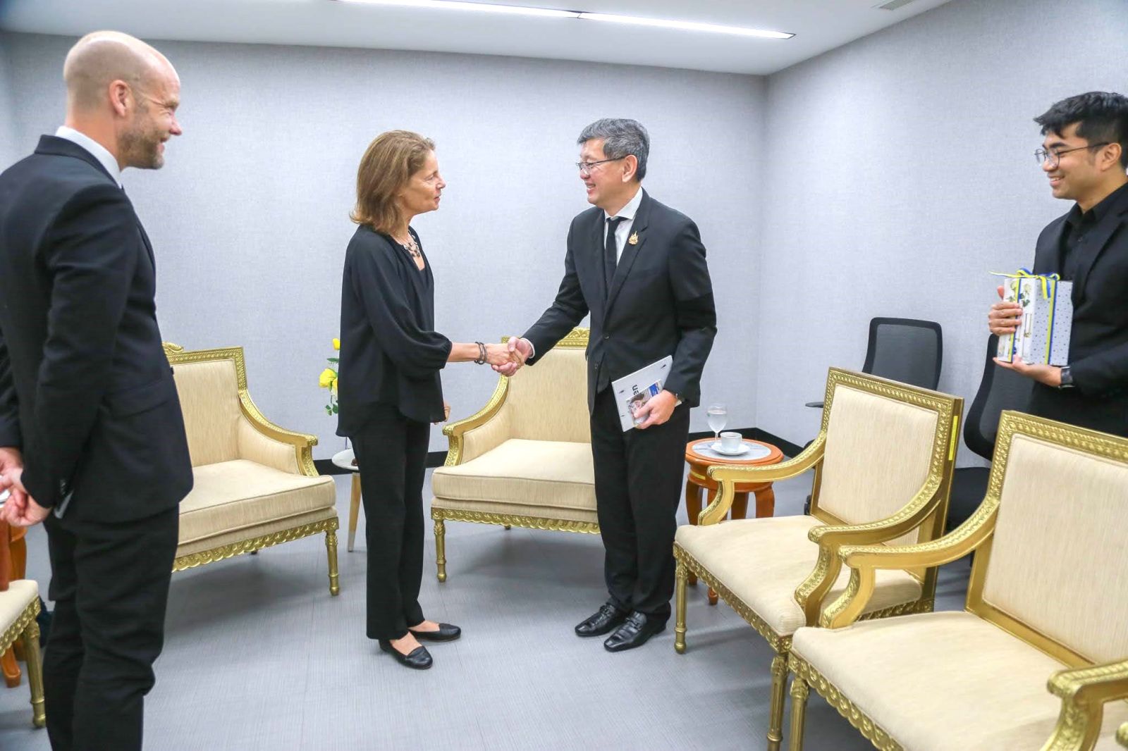 วันที่ 12 พฤศจิกายน 2568 นายพชร อนันตศิลป์ ปลัดกระทรวงดิจิทัลเพื่อเศรษฐกิจและสังคม (ดีอี) ให้การต้อนรับนางแอนนา ฮัมมาร์เกรน (H.E. Mrs. Anna Hammargren) เอกอัครราชทูตสวีเดนประจำประเทศไทย โดยมี นางสาวกัลยา ชินาธิวร ที่ปรึกษาด้านต่างประเทศ กระทรวงดีอี พร้อมด้วยผู้แทนจากสำนักงานคณะกรรมการการรักษาความมั่นคงปลอดภัยไซเบอร์แห่งชาติ (สกมช.) เข้าร่วมหารือ ณ ห้องประชุม 1004 ชั้น 10 กระทรวงดิจิทัลเพื่อเศรษฐกิจและสังคม