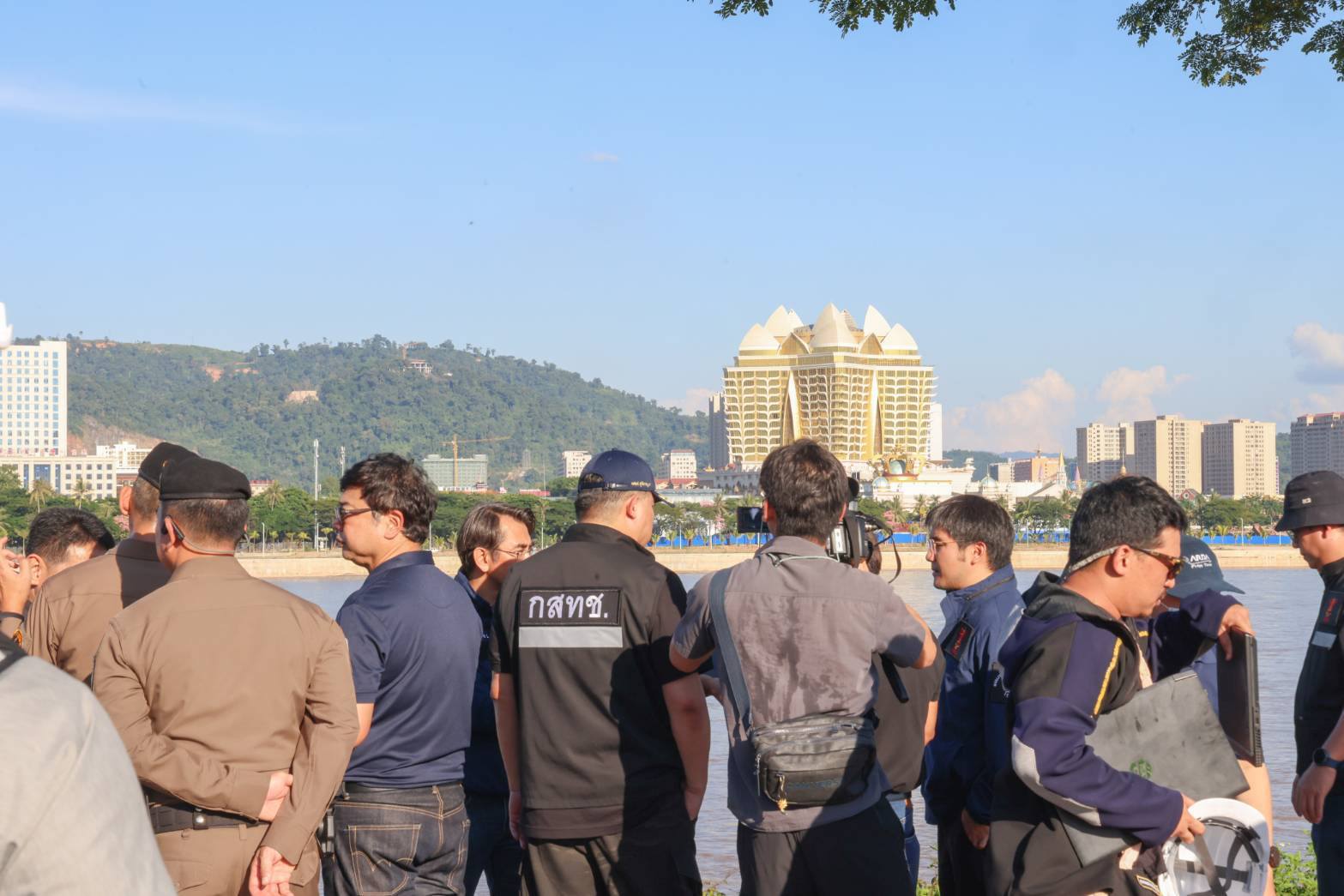 จุดที่สอง บินโดรนตรวจวัดสัญญาณโทรศัพท์เคลื่อนที่ฝั่งตรงข้ามคิงส์โรมัน อ.เชียงแสน ซึ่งเป็นพื้นที่เขตเศรษฐกิจพิเศษสามเหลี่ยมทองคำ